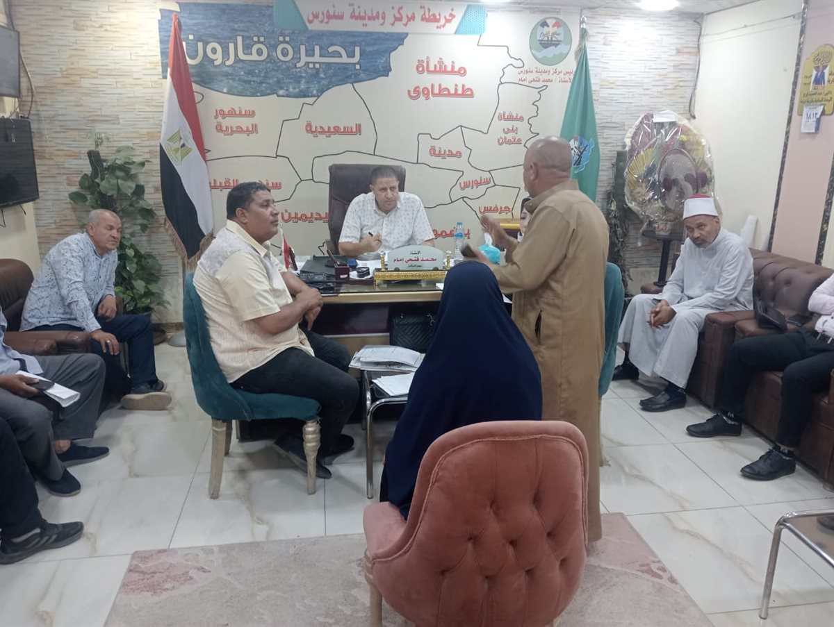 كما عقد سكرتير عام محافظة الفيوم، لقاءً لخدمة المواطنين بمقر الوحدة المحلية لمركز ومدينة سنورس، بحث خلاله 12 حالة، بحضور محمد فتحي رئيس مركز ومدينة سنورس، وممثلي الإدارات الخدمية.