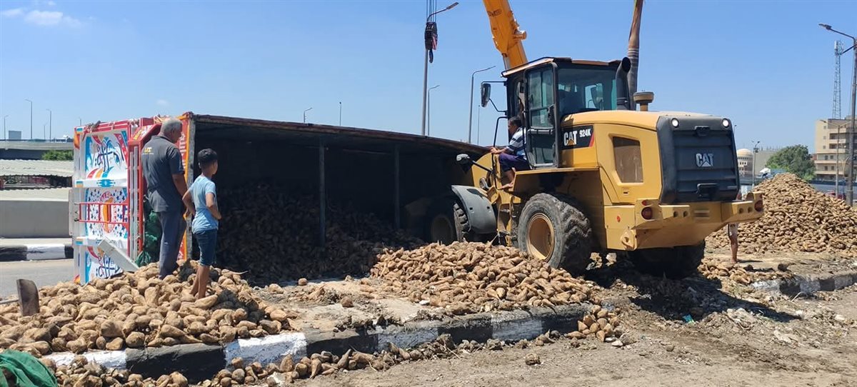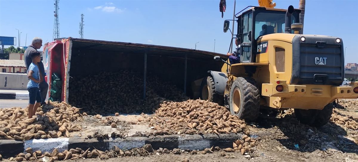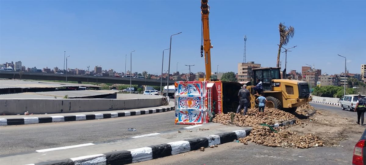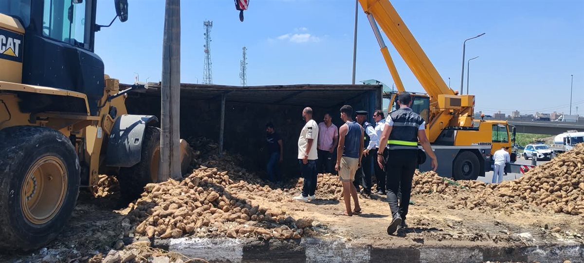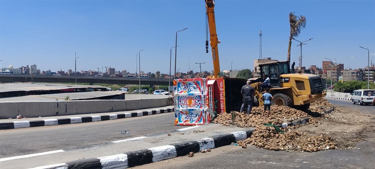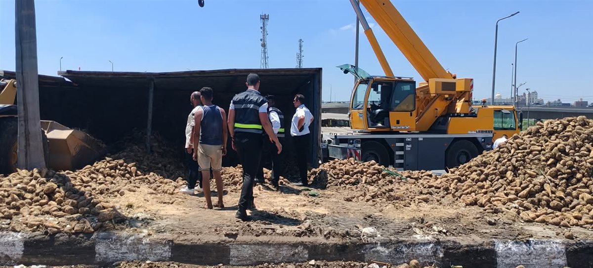 انقلاب مقطورة محملة بالبنجر على كوبري سندوب الدائري في الدقهلية (صور)