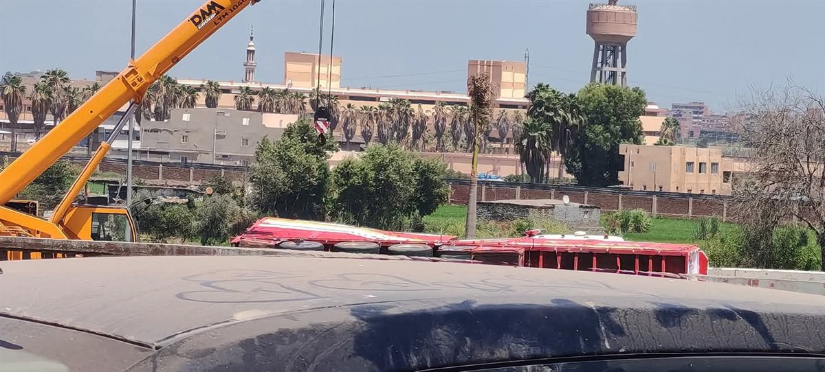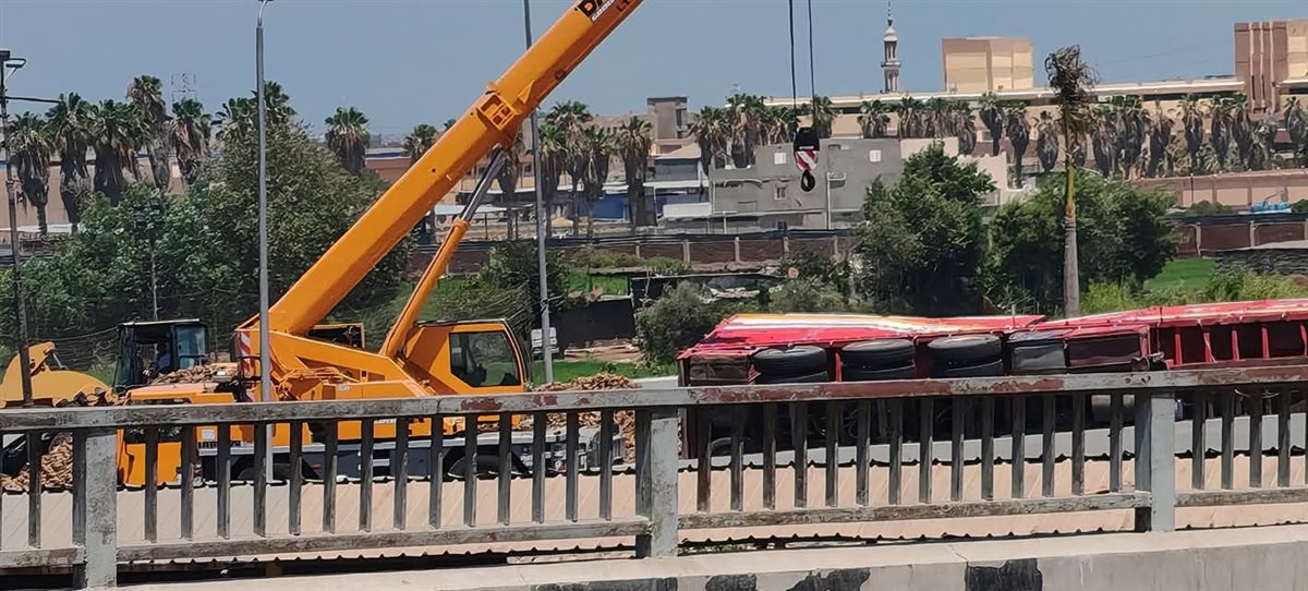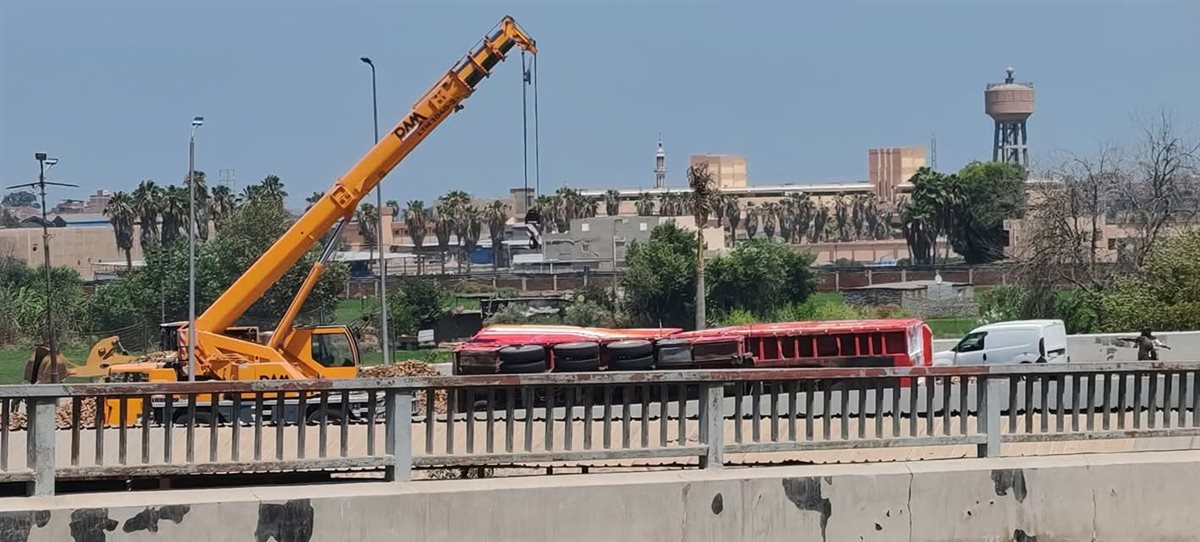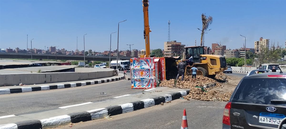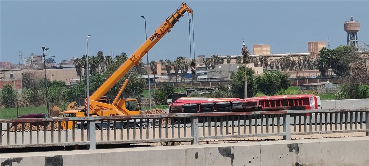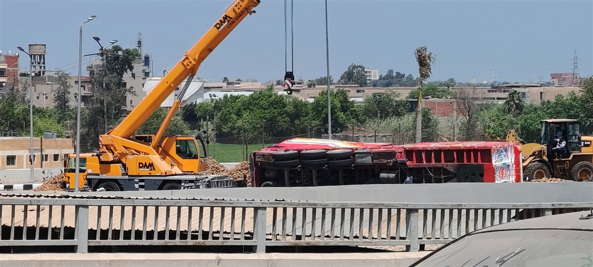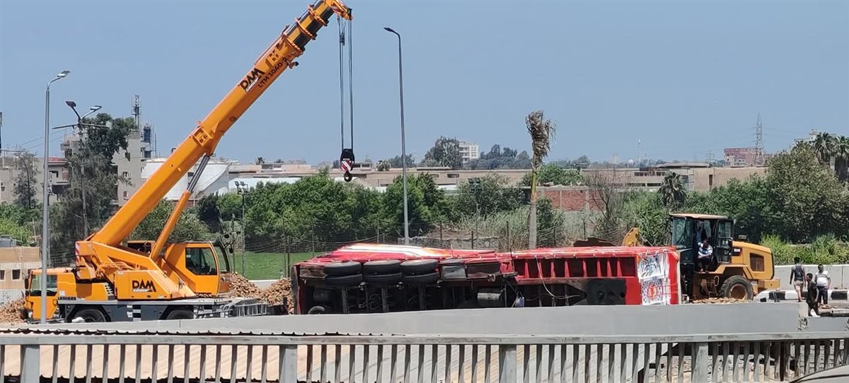 انقلاب مقطورة محملة بالبنجر على كوبري سندوب الدائري في الدقهلية (صور)