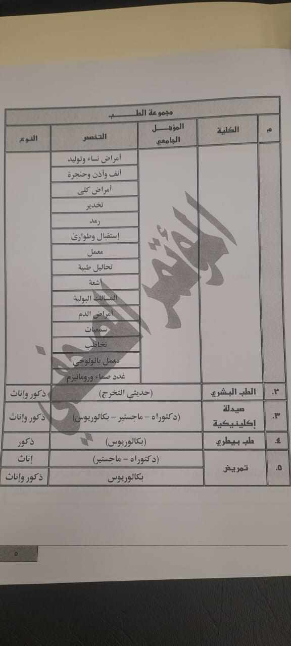 بالنسبة للحاصلين على شهادة (الليسانس في الحقوق "ذكور – إناث" – الحاصلات على البكالوريوس في التربية الرياضية "إناث"