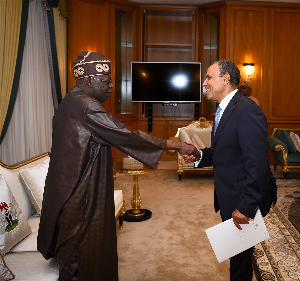 بتكليف من الرئيس عبد الفتاح السيسي رئيس الجمهورية، التقى د. بدر عبد العاطي وزير الخارجية والهجرة وشئون المصريين بالخارج الليلة الماضية، بالرئيس "بولا أحمد تينوبو" رئيس جمهورية نيجيريا الاتحادية، حيث سلمه رسالة خطية من الرئيس السيسي، تؤكد على عمق العلاقات الثنائية المتميزة بين البلدين الشقيقين، وتعرب عن التطلع لتعزيز التعاون والتنسيق بين البلدين فى المجالات المختلفة ودعم الأمن والاستقرار بالقارة الأفريقية.