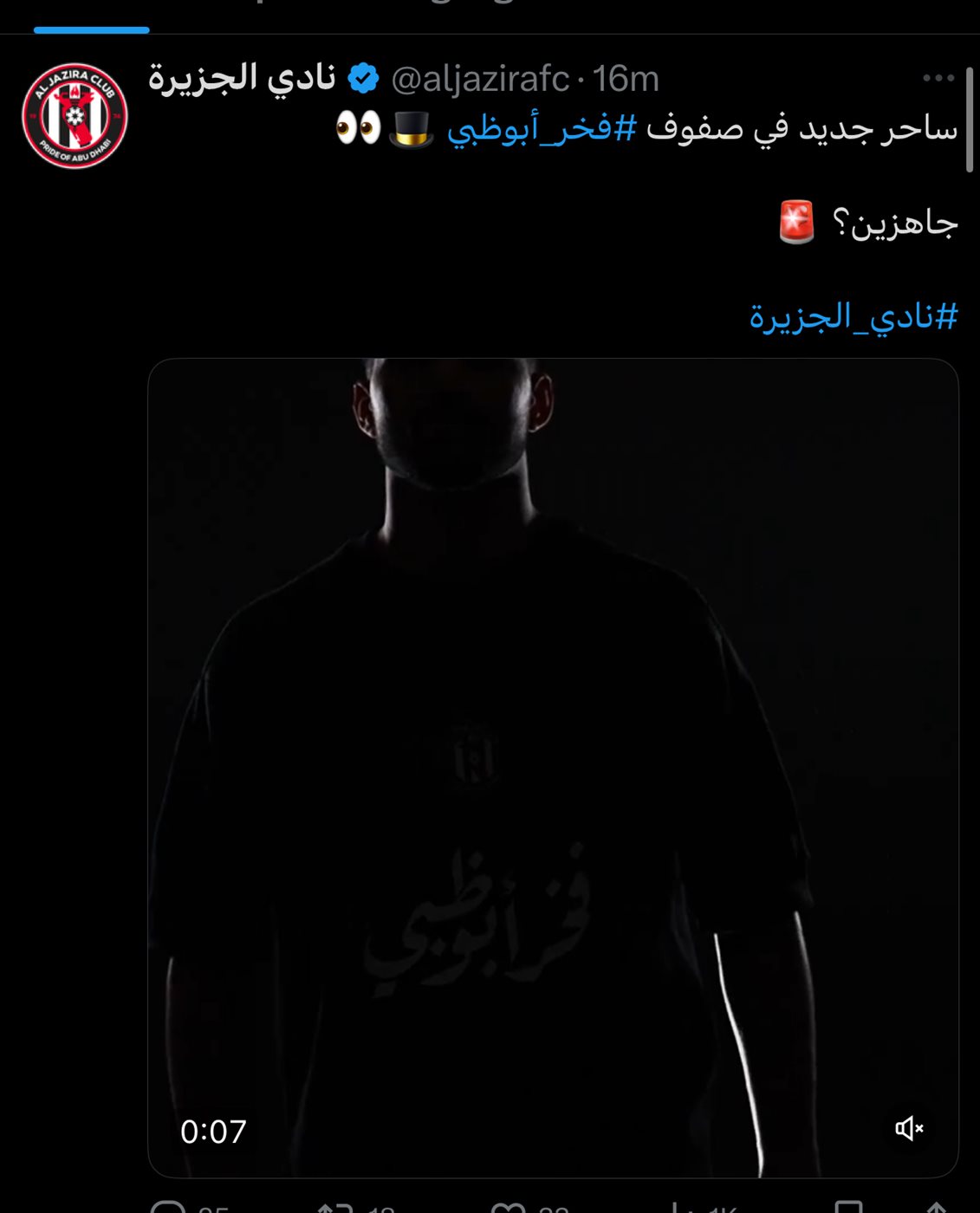 ونشر حساب الجزيرة فيديو تشويقيا للإعلان عن الصفقة وكتب: “ساحر جديد في صفوف فخر أبو ظبي”.