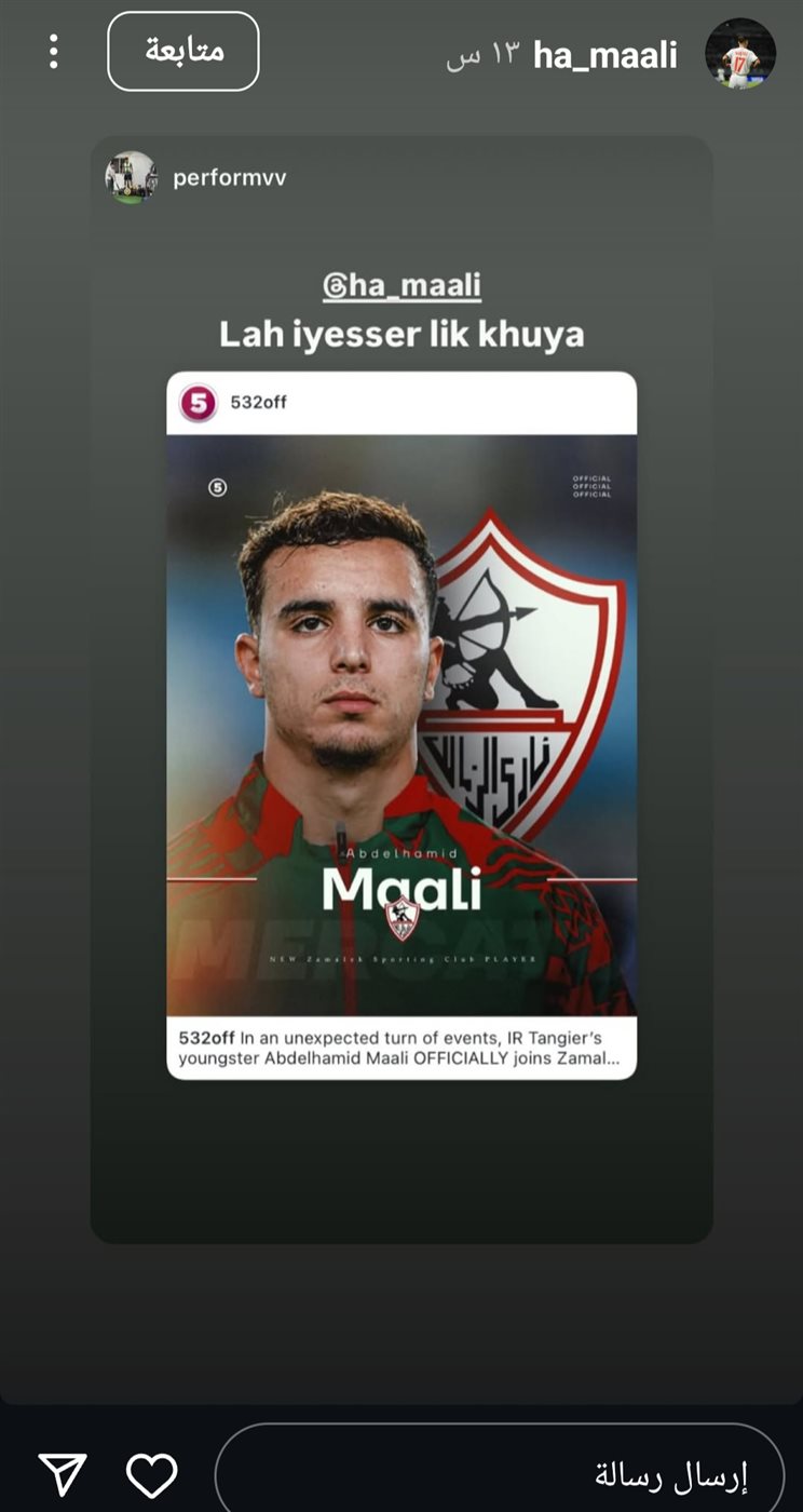 المغربي معالي يعلن انتقاله إلى الزمالك ويودع اتحاد طنجة