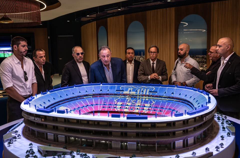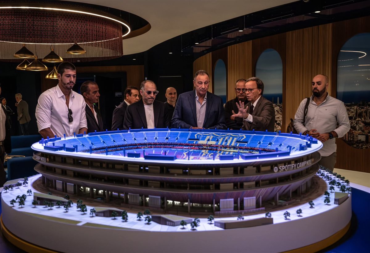 عرضت الصفحة الرسمية للنادي الأهلي لقطات من زيارة محمود الخطيب، رئيس النادي، ومحمد كامل رئيس شركة القلعة الحمراء القائمة على مشروع استاد الأهلي، ووفد من الشركة إلى نادي برشلونة، لنادي برشلونة والذي كان في استقبالهم خوان لابورتا، رئيس النادي، ونائبه رافائيل يوستي، ومدير المتحف جوردي بينيتاس.