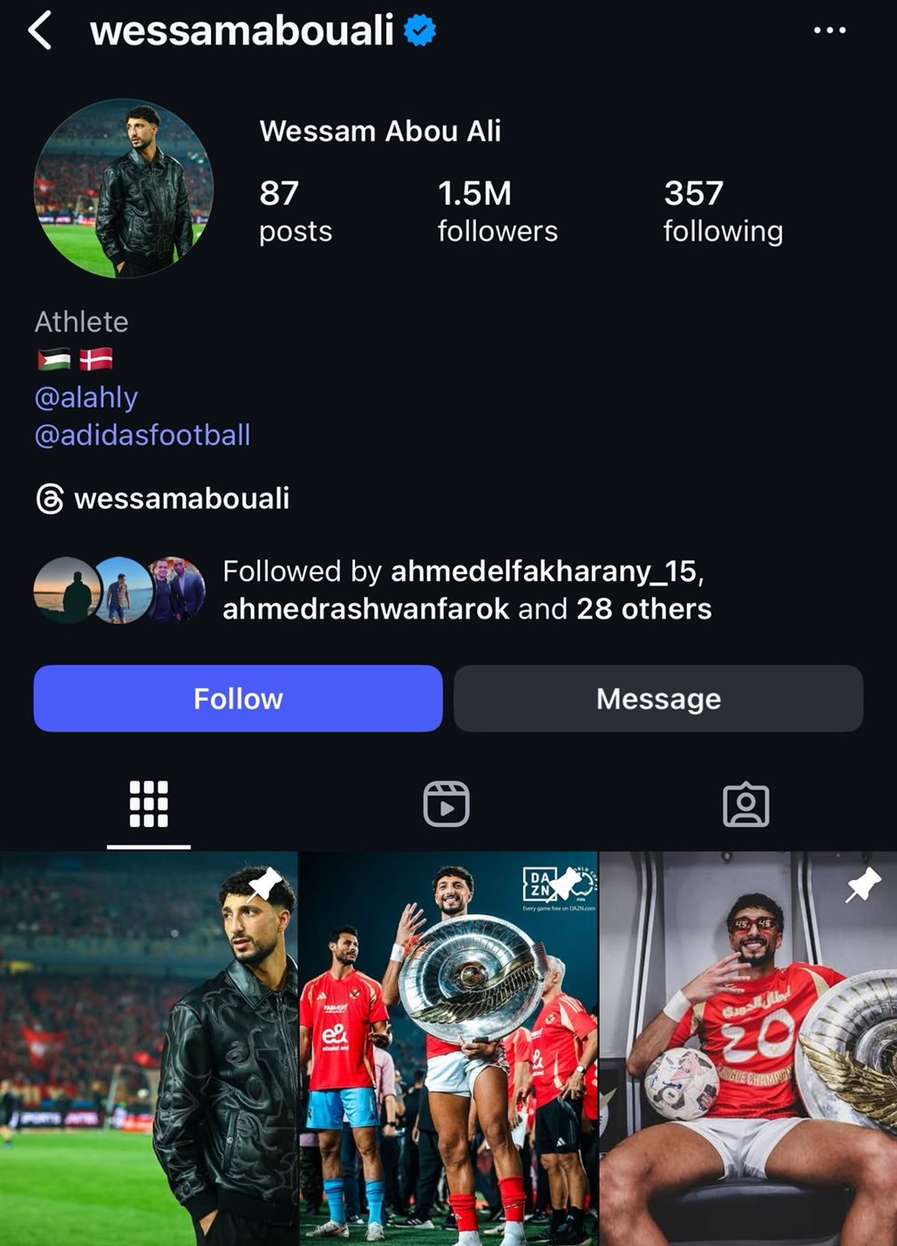 أعاد وسام أبو علي، مهاجم الفريق الأول لكرة القدم بالنادي الأهلي، فتح حسابه الشخصي على موقع التواصل الاجتماعي إنستجرام.