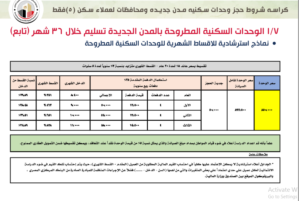 كشفت وزارة الاسكان ممثلة في صندوق الإسكان الاجتماعي ودعم التمويل العقاري عن الاقساط الاسترشادية لشقق أصحاب الأولوية سكن لكل المصريين 5 للمواطنين منخفضى الدخل محور تسليم خلال 36 شهرا بالمدن الجديدة.
