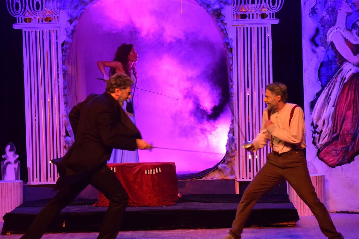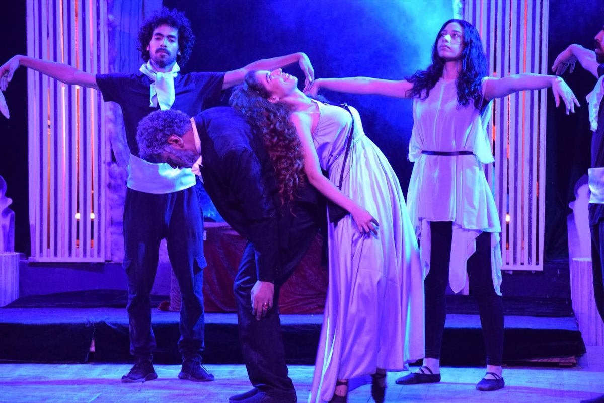 العرض المسرحي “حفل التأبين” تأليف أنطون تشيخوف، دراماتورج وإخراج مايكل رفلة، وشهد العرض لجنة تحكيم مسابقة العروض المسرحية بالمهرجان برئاسة الفنان رياض الخولي.