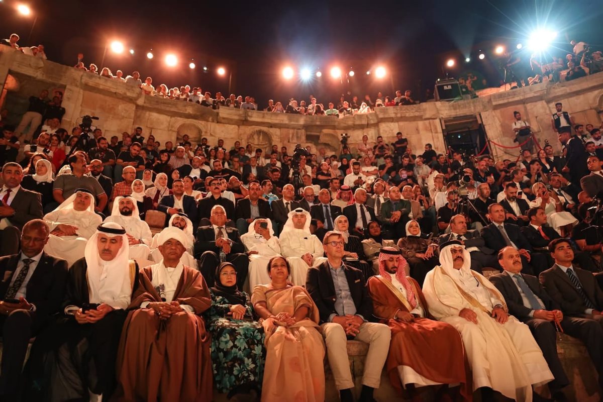 وأكد وزير الثقافة الأردني ورئيس اللجنة العليا للمهرجان الدكتور مصطفى الرواشدة في كلمته، أن مهرجان جرش هو رسالة وطنية متجددة تعبّر عن عمق الثقافة الأردنية وروحها الأصيلة، وتؤكد في كل دورة من دوراته على ثوابت الأمة، وفي مقدمتها حق الشعب الفلسطيني في الحرية والكرامة والسلام.