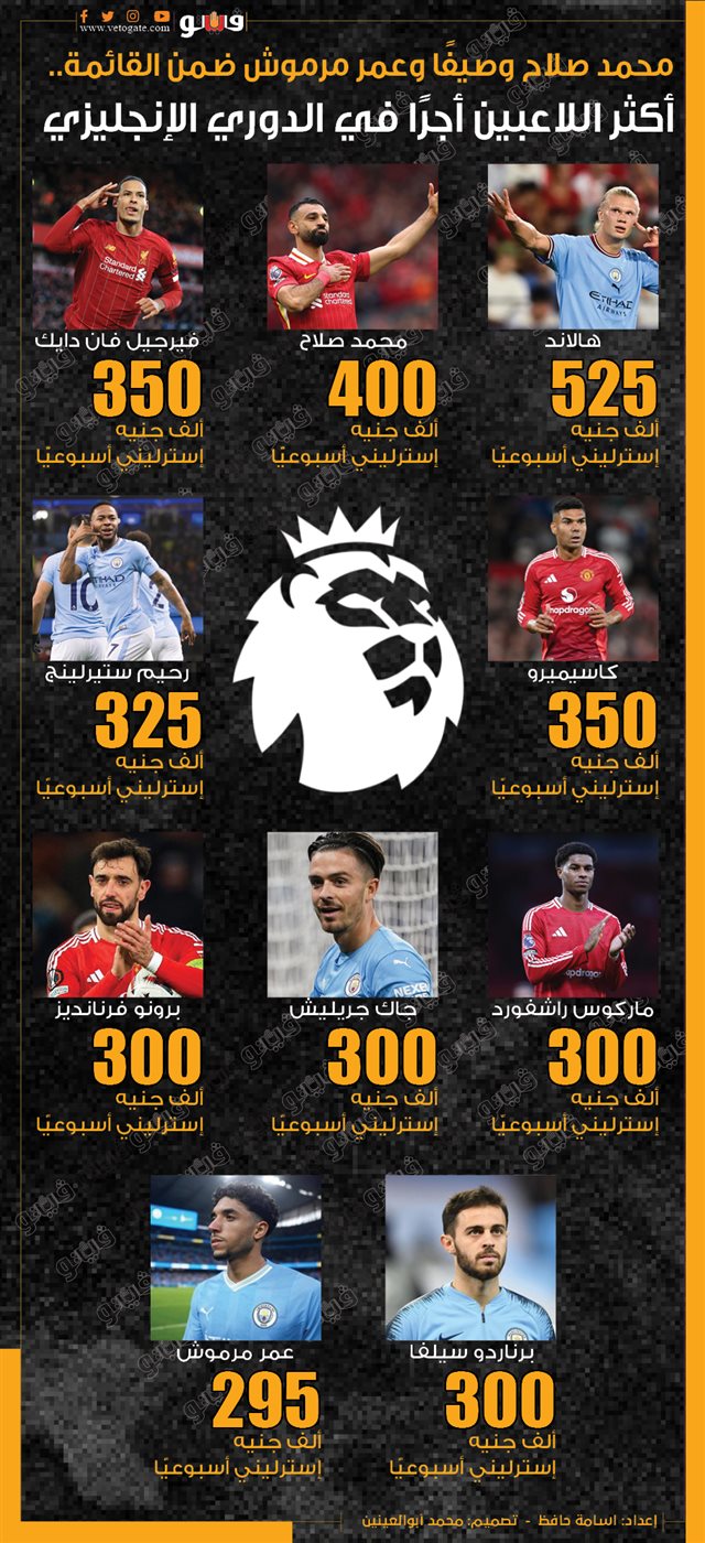 محمد صلاح وصيفًا وعمر مرموش ضمن القائمة.. أكثر اللاعبين أجرًا في الدوري الإنجليزي (إنفوجراف)