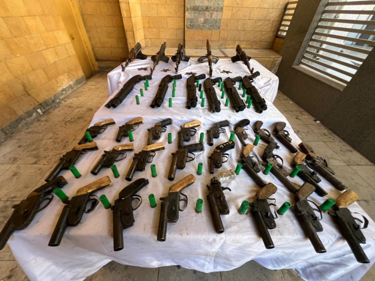 كما تم ضبط 66 قطعة سلاح ناري غير مرخصة (9 بنادق آلية، 11 بندقية خرطوش، و46 فرد خرطوش) بحوزة 63 متهمًا (منهم 18 مسجلين جنائيًا)، إلى جانب تنفيذ 1025 حكمًا قضائيًا متنوعًا.