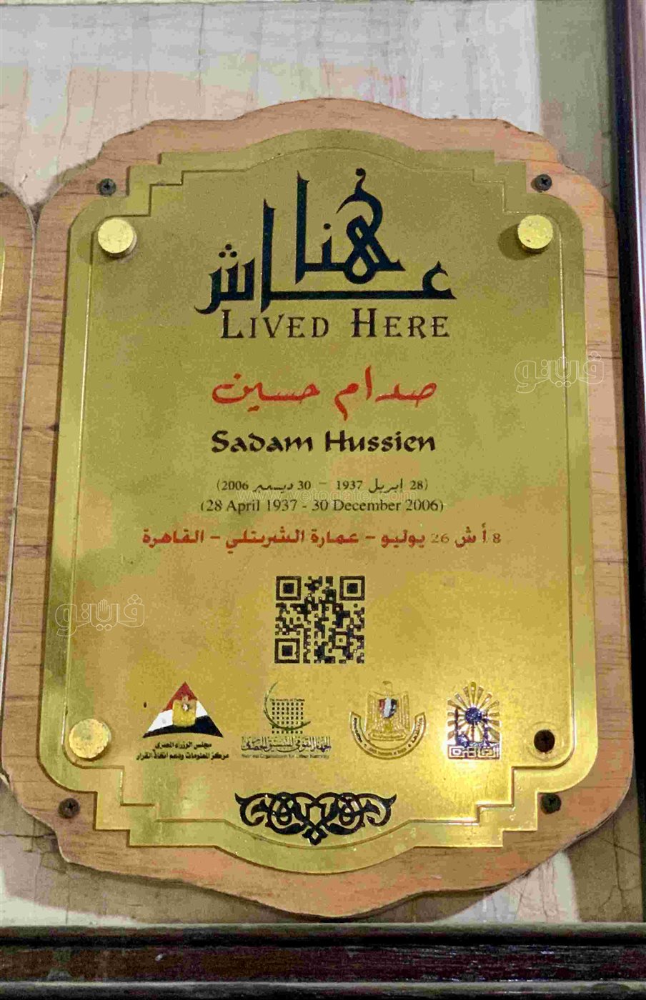 في زحام وسط القاهرة، وسط العمارات التراثية التي تحكي تاريخ القاهرة الخديوية، تلفت النظر لافتة صغيرة معلقة على واجهة عمارة الشربتلي في الزمالك تحمل عبارة "عاش هنا صدام حسين".