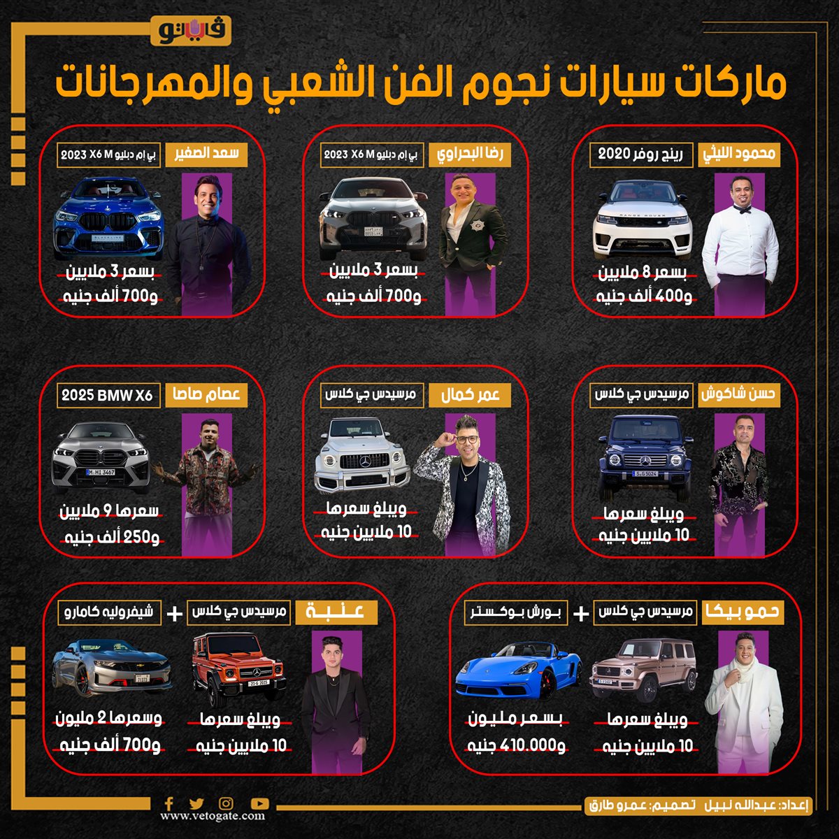 ماركات سيارات نجوم الفن الشعبي والمهرجانات (إنفوجراف)