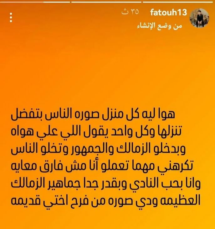 مش فارقة معايا، فتوح ينشر قصة الصورة الجديدة التي أثارت غضب جماهير الزمالك