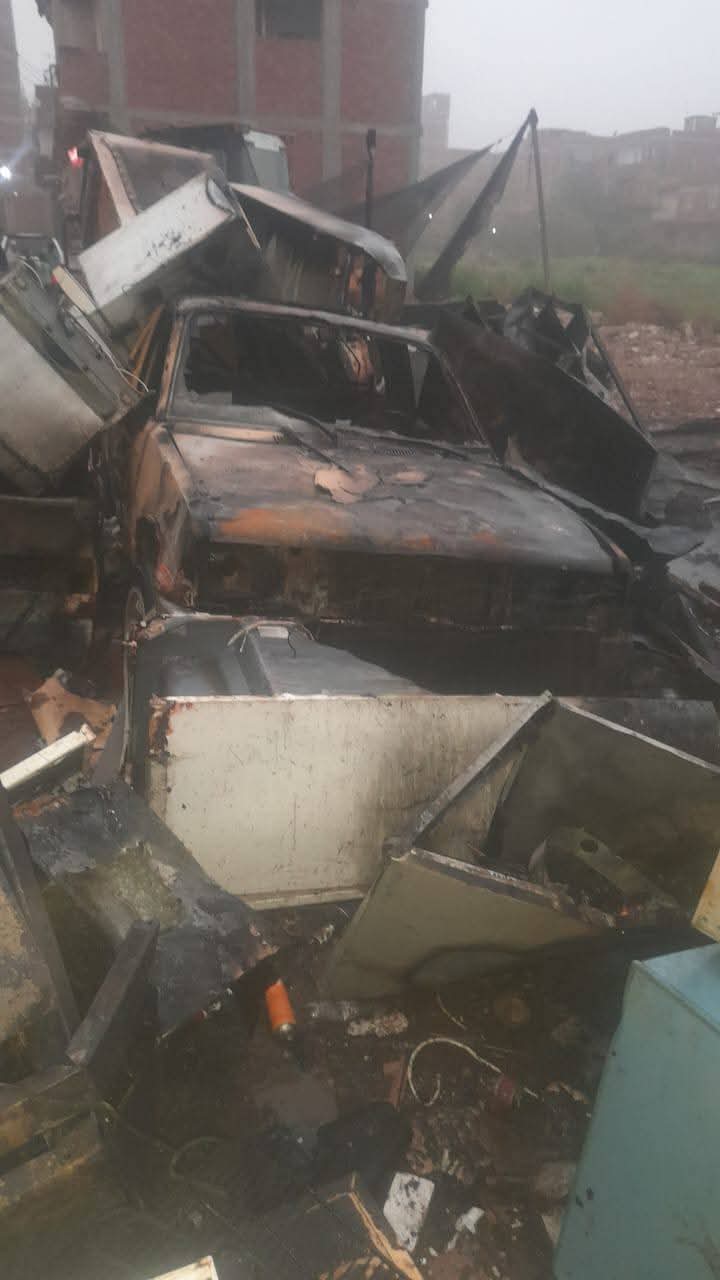 آثار احتراق مخزن خردة بجوار مقابر الأقباط بالسنطة (صور)
