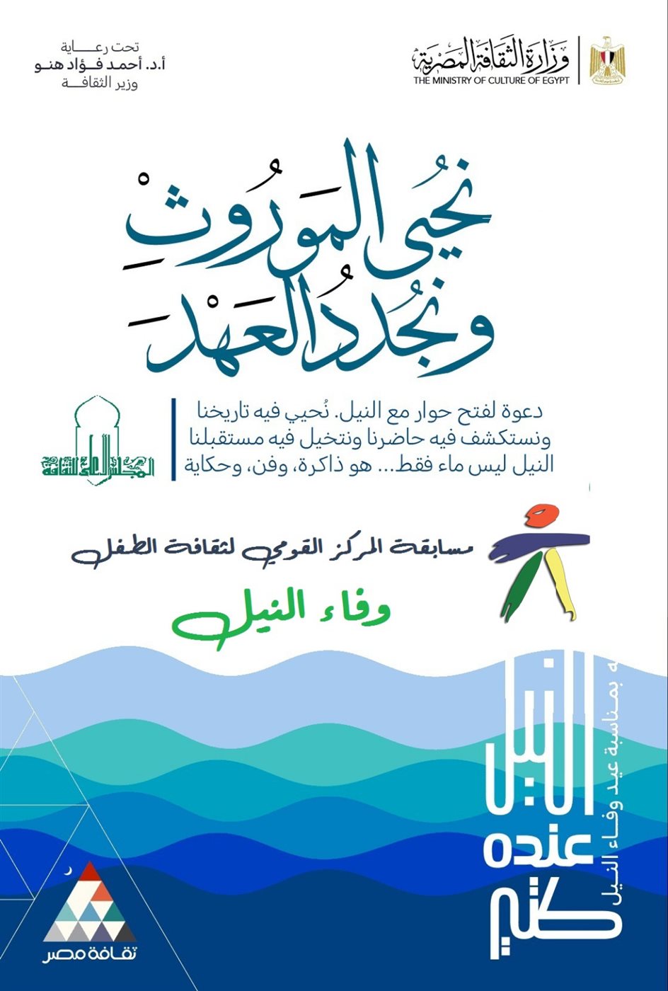 تُطلق وزارة الثقافة بالتعاون مع وزارتي الموارد المائية والري والبيئة، مسابقة "وفاء النيل"، التي ينظمها المركز القومي لثقافة الطفل التابع للمجلس الأعلي للثقافة للأطفال والشباب من عمر "8 إلى 18 سنة"، لتشجيعهم على التعبير عن حبهم للنيل من خلال الفن والإبداع.