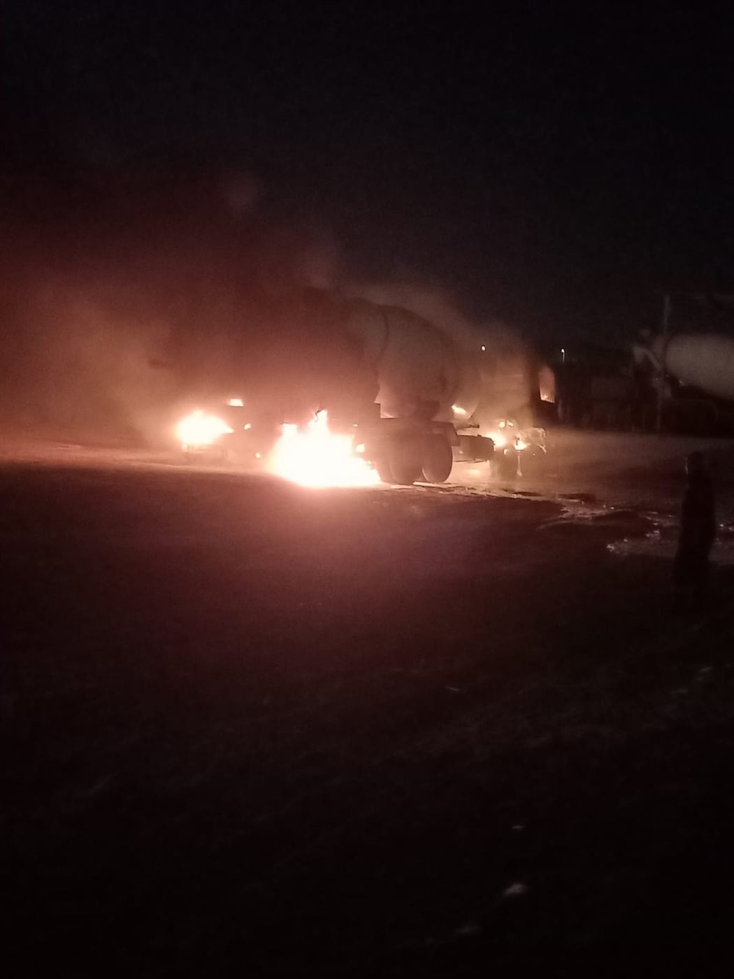 تحولت إلى كتلة لهب في ثانية، لحظة اشتعال النار بسيارة خرسانة بطريق البوليفار بأكتوبر (صور)