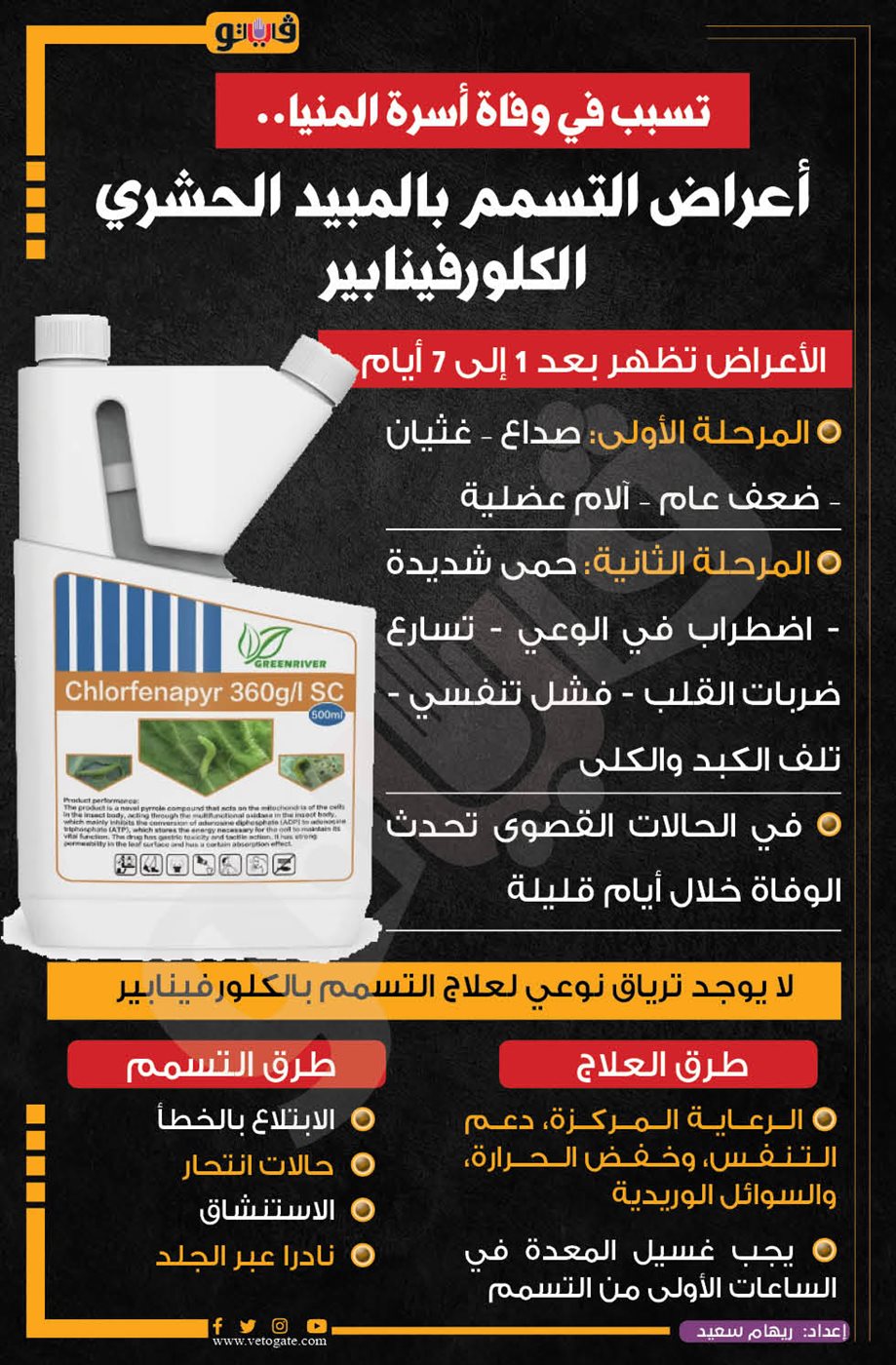 تسبب في وفاة أسرة المنيا..أعراض التسمم بالمبيد الحشري الكلورفينابير (إنفوجراف)