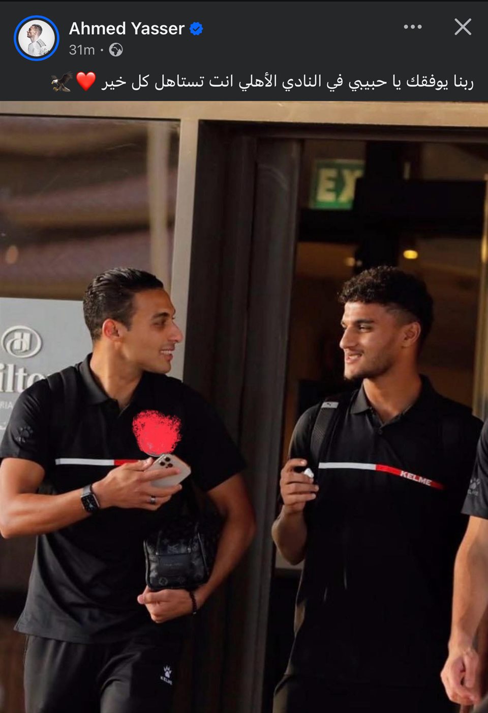 وعلق أحمد ياسر علي صورته مع أسامة فيصل قائلا: "ربنا يوفقك يا حبيبي في النادي الأهلي أنت تستاهل كل خير".