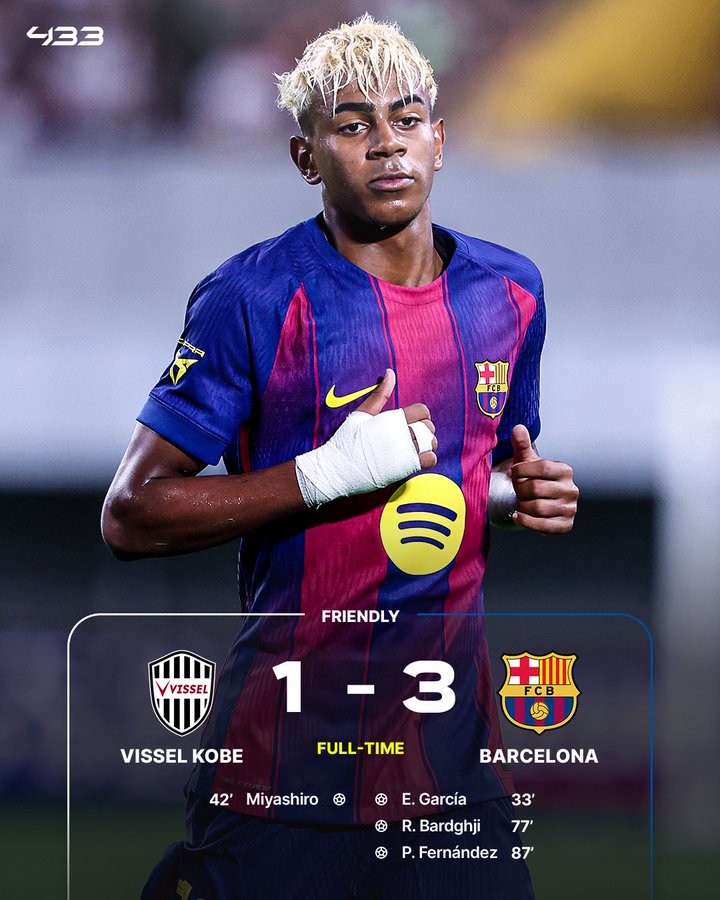 فاز برشلونة الإسباني على فيسيل كوبي الياباني بثلاثة أهداف مقابل هدف على ملعب "كوبه المنزلي"، في أول الاختبارات الودية لكتيبة المدرب الألماني هذا الصيف.