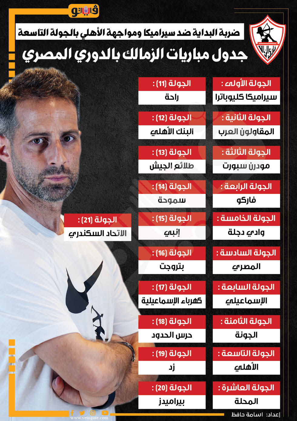 جدول مباريات الزمالك بالدوري المصري (انفوجراف)