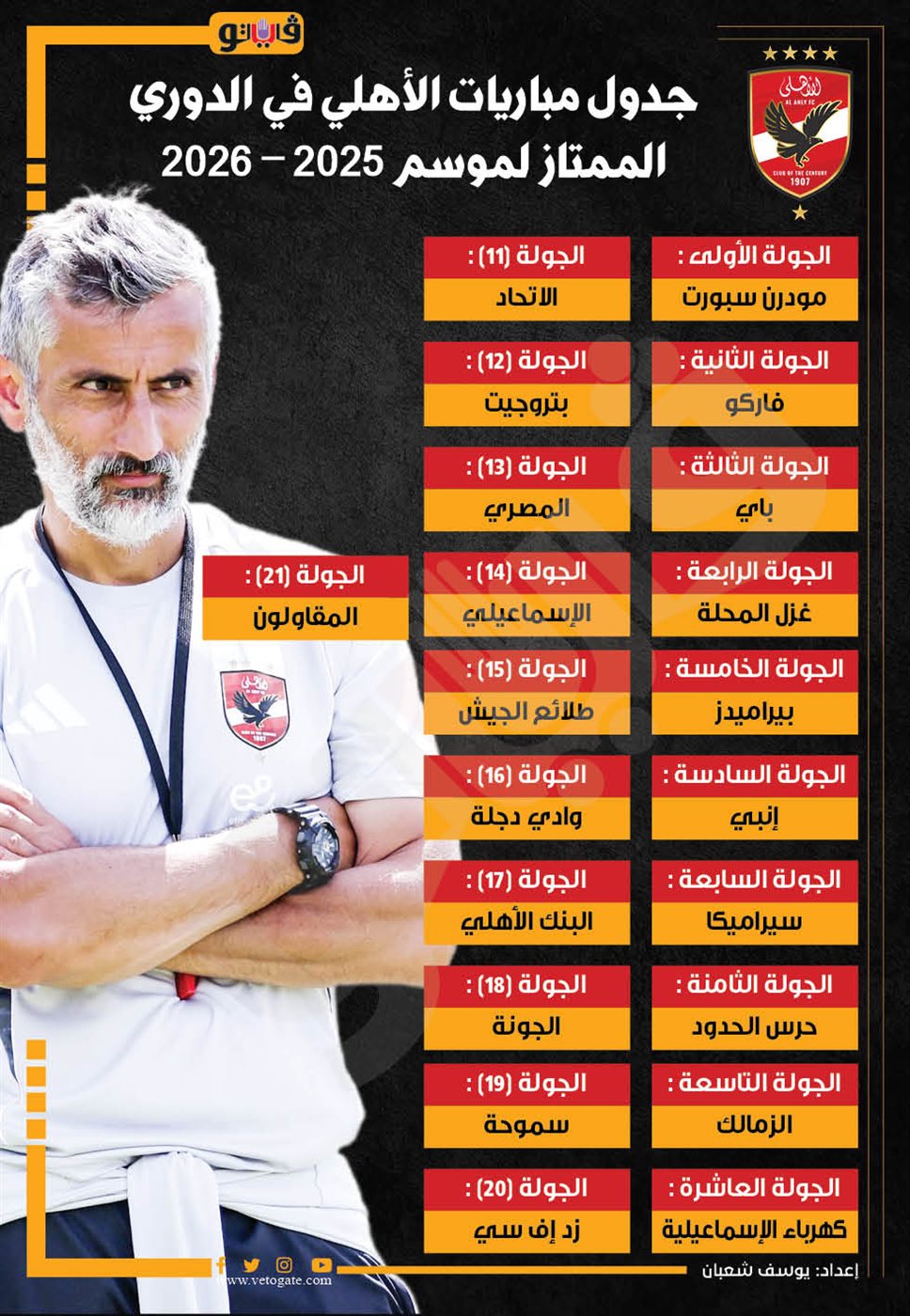 جدول مباريات الأهلي في الدوري الممتاز لموسم 2025 - 2026 (انفوجراف)
