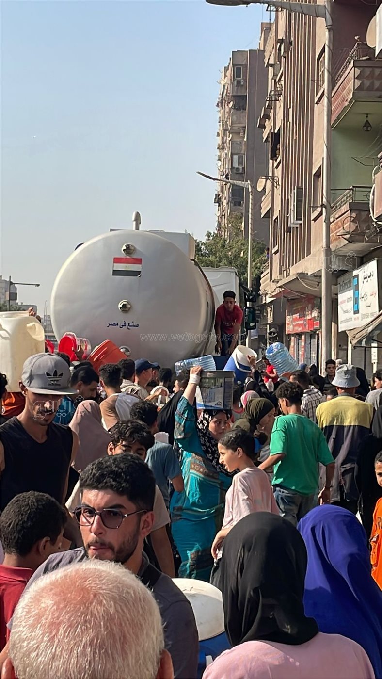 تزاحم المواطنين حول سيارات مياه الشرب بالجيزة للحصول على احتياجاتهم (فيديو وصور)
