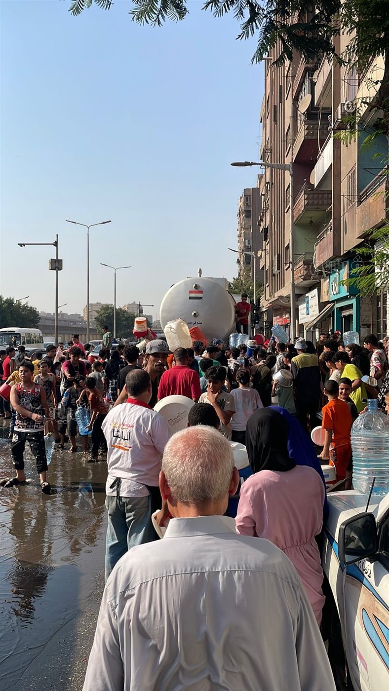 رصدت عدسة فيتو تزاحم عدد كبير من مواطني محافظة الجيزة حول سيارات شركة مياه الشرب والصرف الصحى بالمحافظة لتوفير المياه النظيفة للمواطنين، وذلك في ظل انقطاع المياه عن أغلب مدن المحافظة بسبب العطل الفني في محطة محولات كهرباء جزيرة الذهب.
