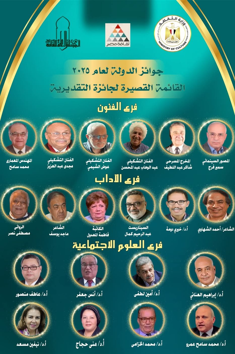 وجاءت قائمة المرشحين للفوز بجائزة الدولة التقديرية لعام 2025 كالتالي:
