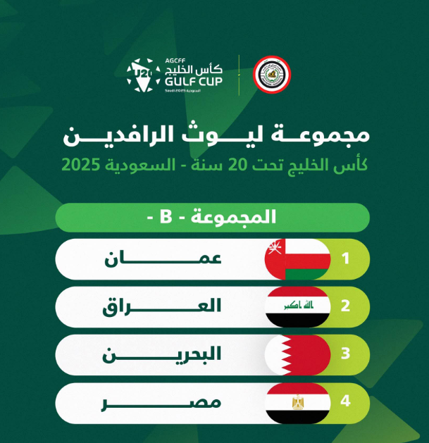 أجريت اليوم الإثنين قرعة النسخة الأولى من بطولة كأس الخليج للشباب تحت 20 عامًا، بمشاركة 8 منتخبات بينهما منتخب مصر.