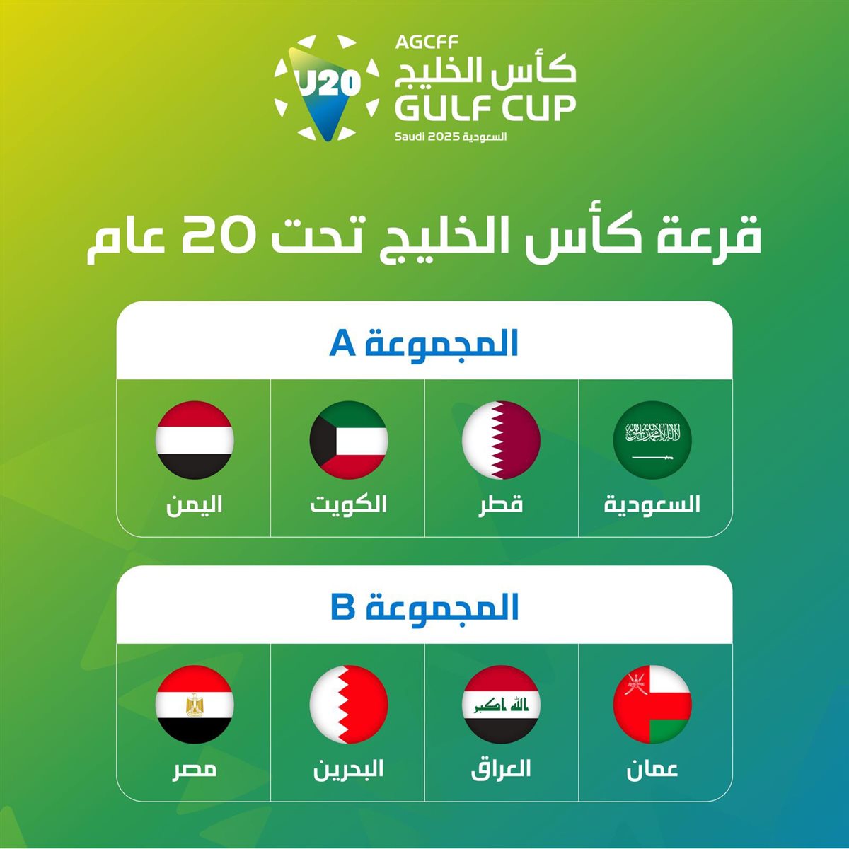 أجريت اليوم الإثنين قرعة النسخة الأولى من بطولة كأس الخليج للشباب تحت 20 عامًا، في مقر الاتحاد بمشاركة 8 منتخبات بينهما منتخب مصر.