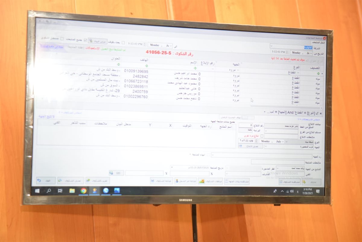 وخلال الزيارة، استمع المحافظ إلى شرح تفصيلي حول آلية عمل غرفة الخط الساخن، وكيفية استقبال شكاوى المواطنين المتعلقة بانقطاع المياه أو ضعف الضخ، والإجراءات التي يتم اتخاذها حيال هذه البلاغات.