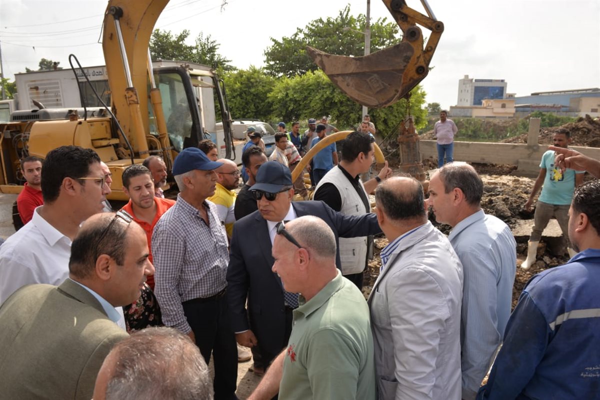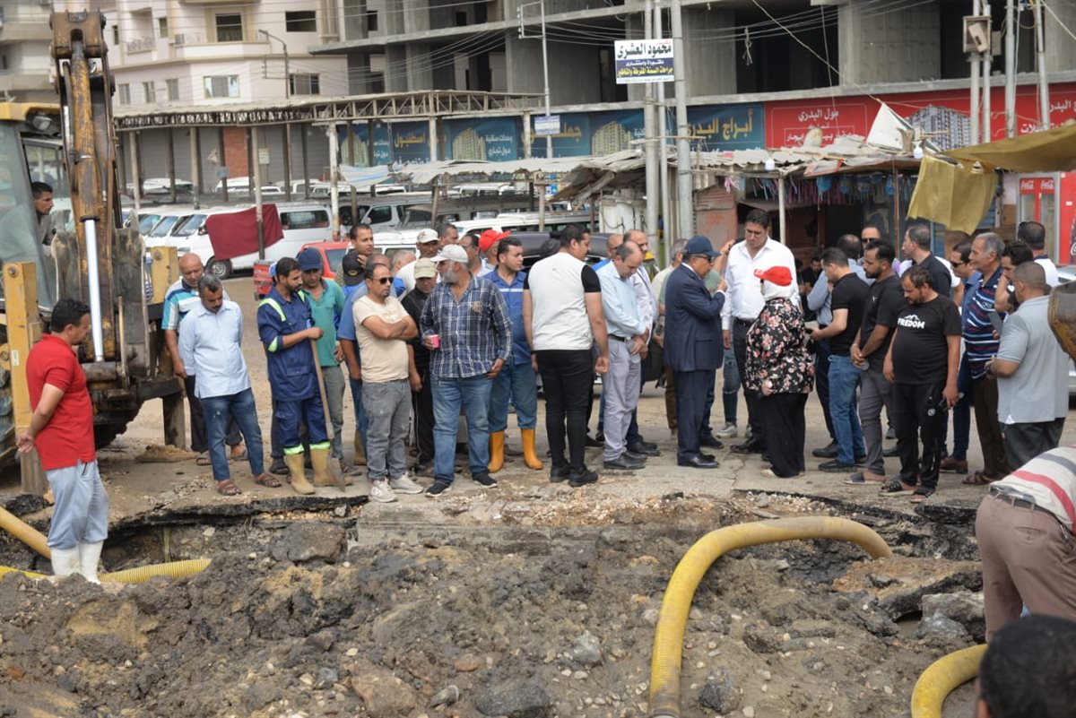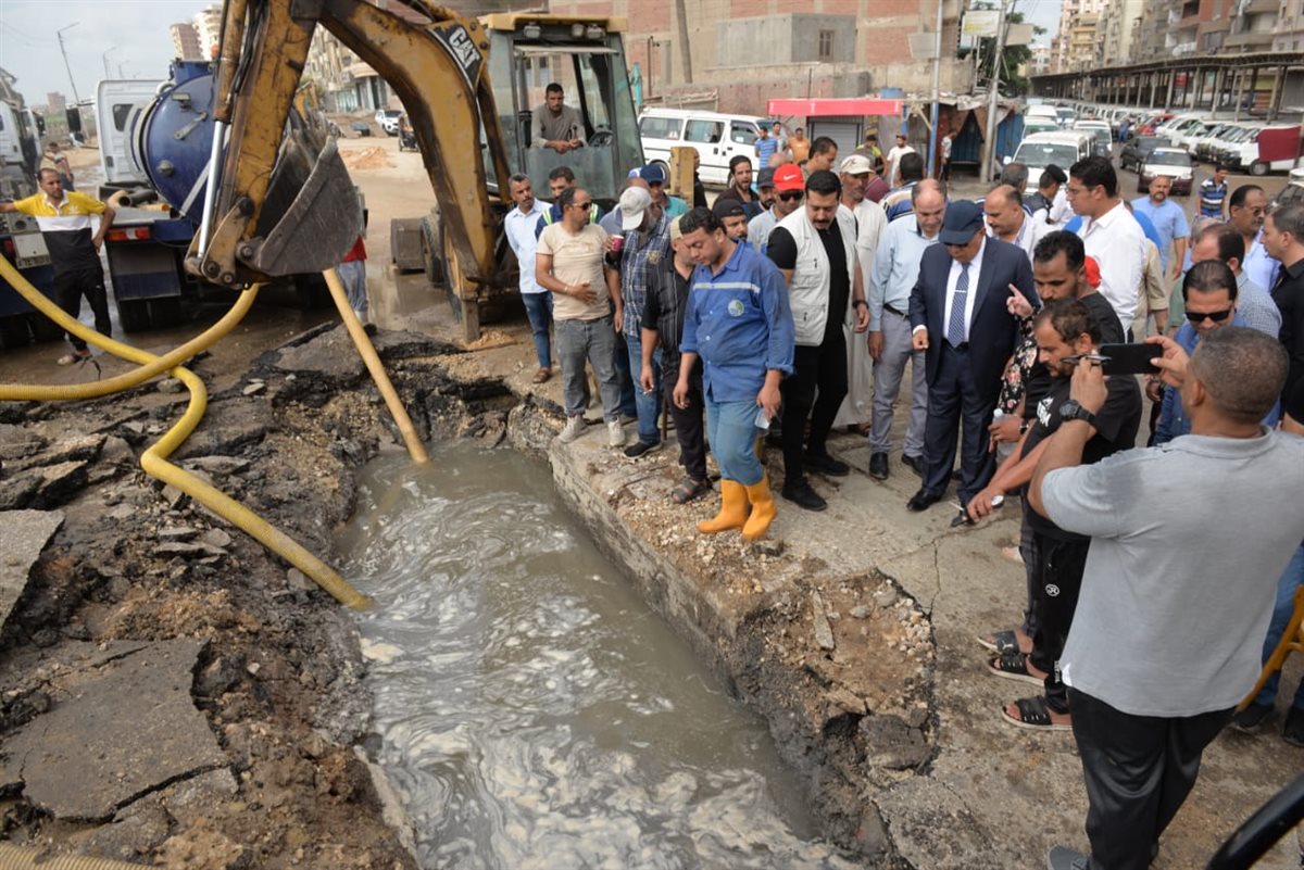 محافظ الدقهلية يصل موقع كسر خط مياه رئيسي بشارع ترعة المنصورية (صور)