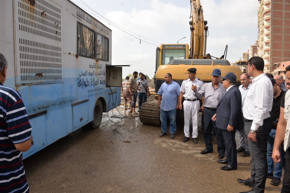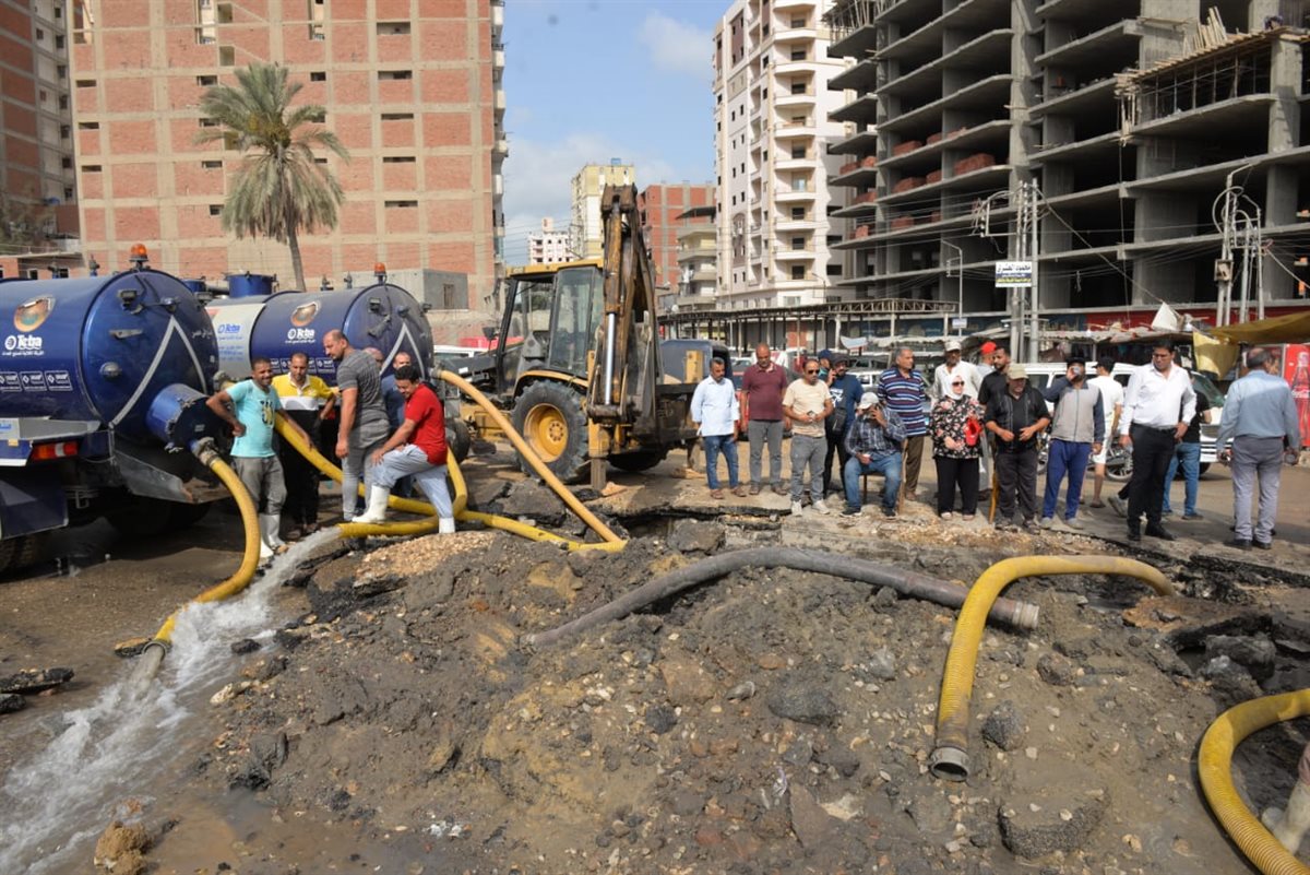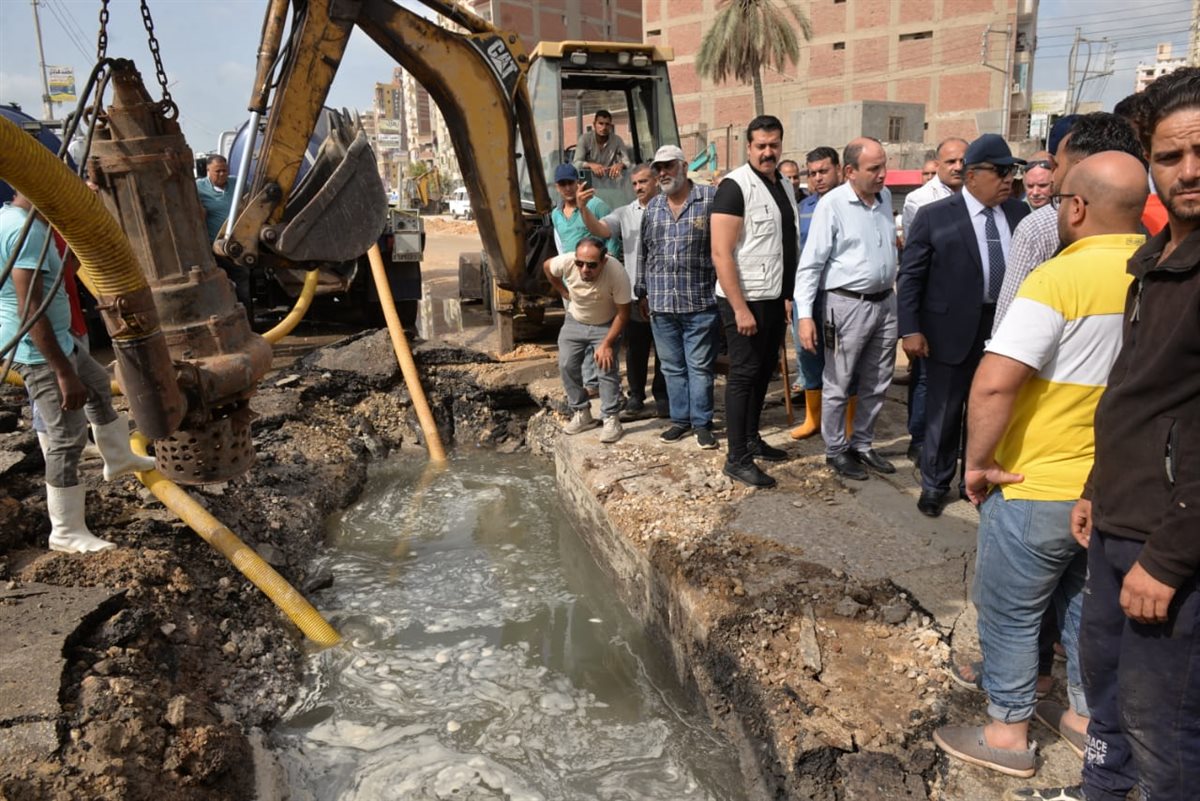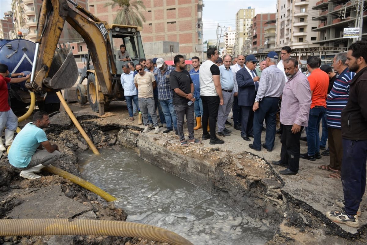 محافظ الدقهلية يصل موقع كسر خط مياه رئيسي بشارع ترعة المنصورية (صور)