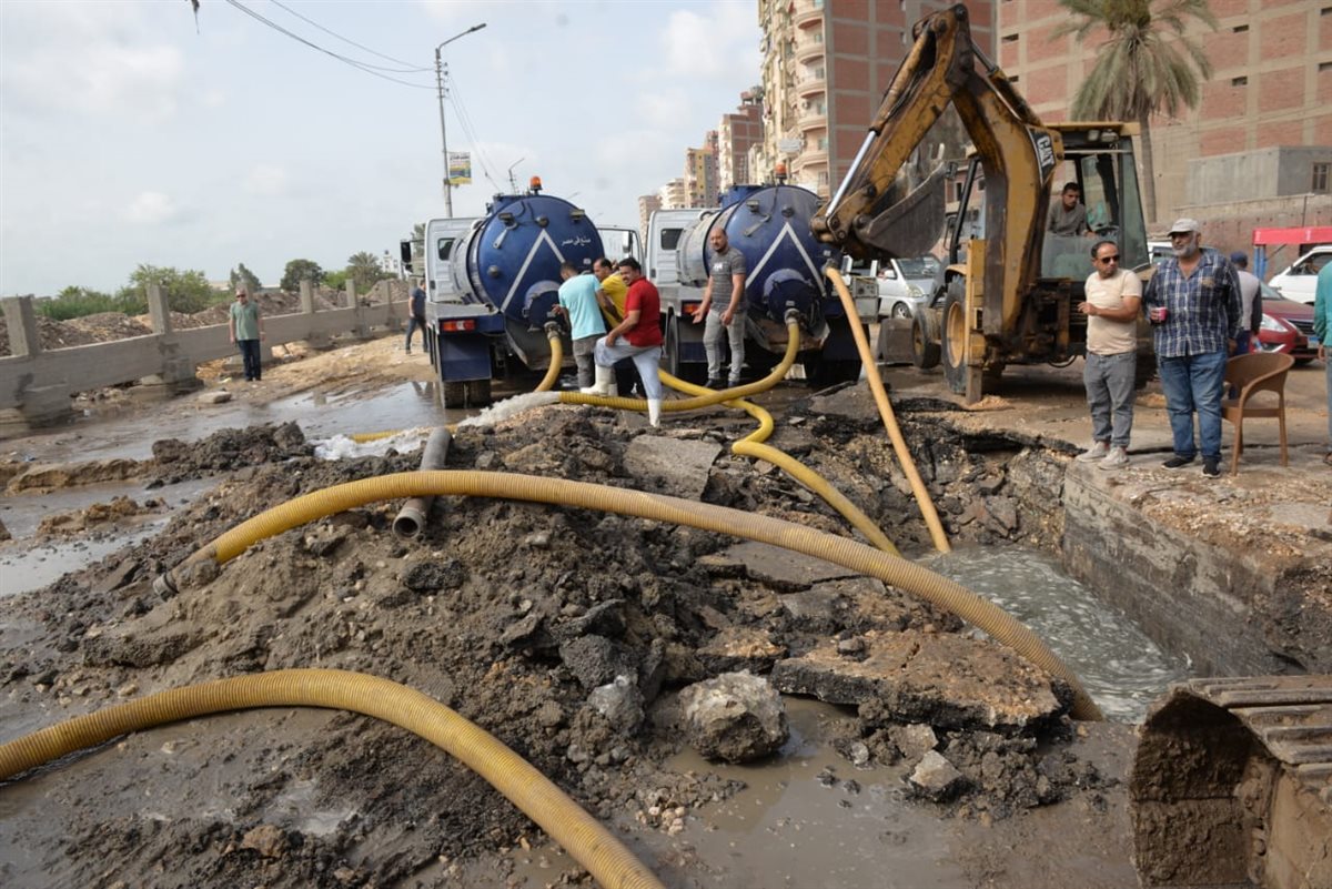 هذا ويطمئن " محافظ الدقهليه " المواطنين أن فرق العمل قد باشرت عملها علي الفور وتم غلق محابس المياه علي هذا الخط بنطاق شرق وغرب لحين الانتهاء من إصلاح الكسر وفتح جميع مطابق الصرف الصحي لسحب المياه من الشوارع والدفع بسيارات كسح مياه للمساهمة في سرعة سحب المياه من الشوارع، وجاري العمل علي اصلاح الخط.