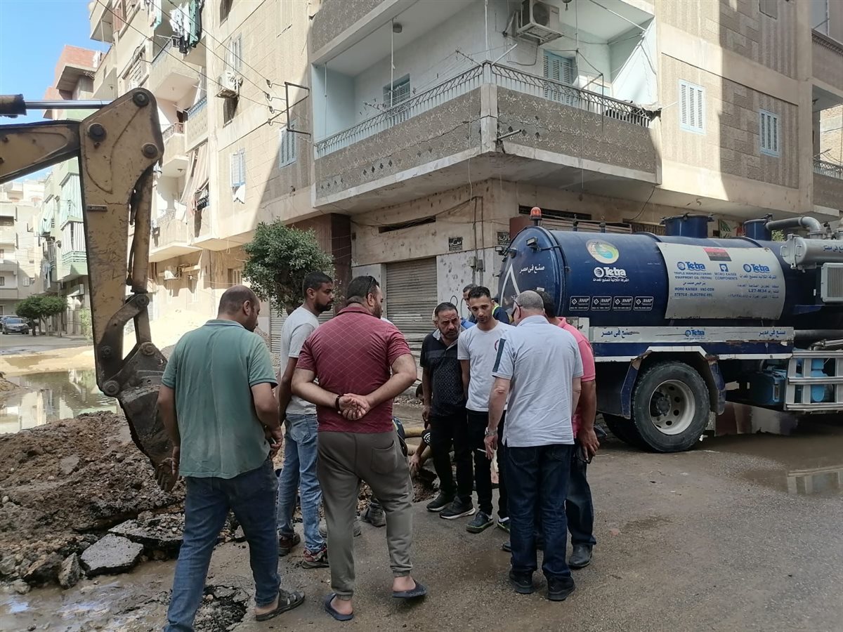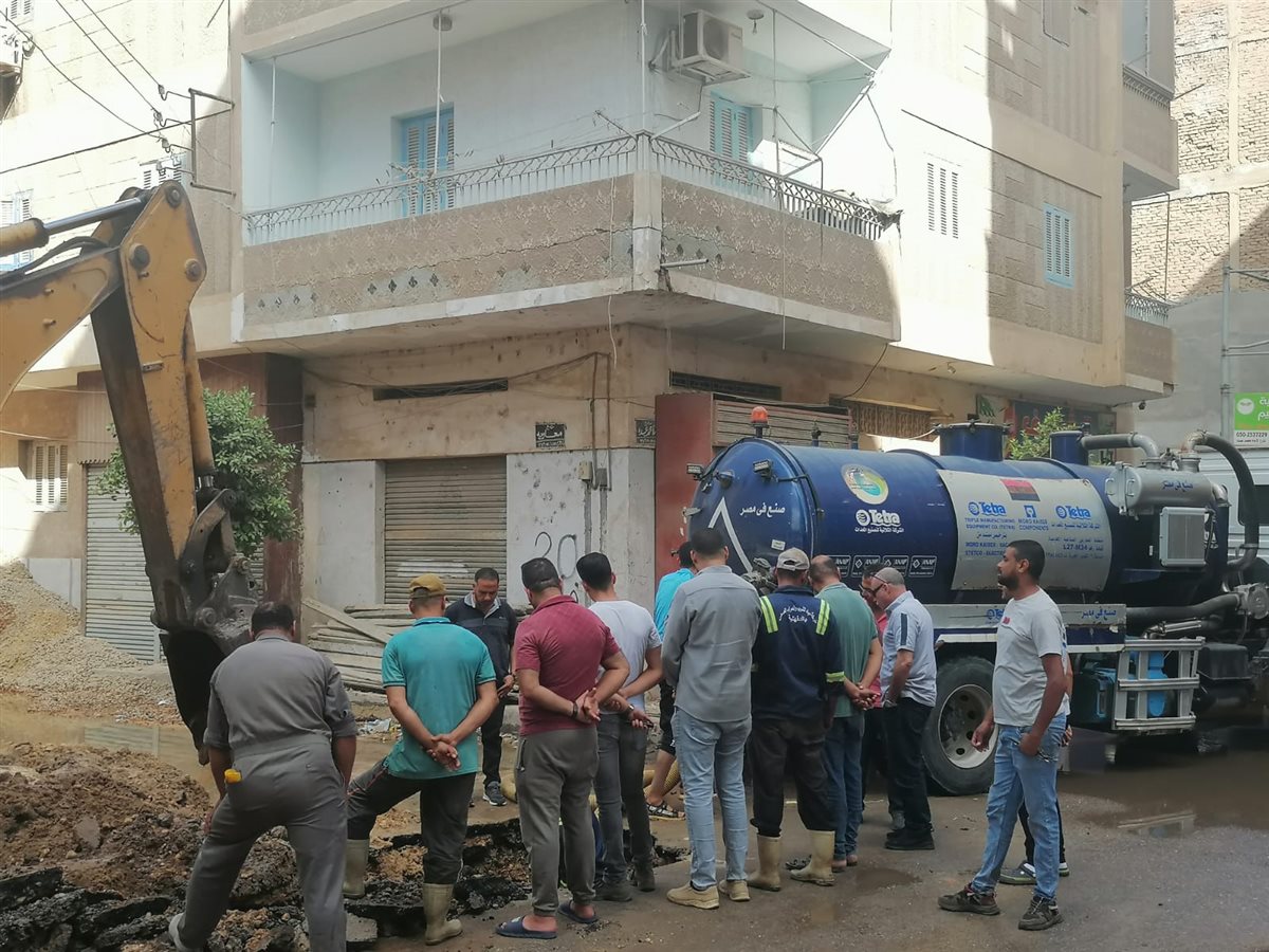 كما حدث كسر بخط مياه 8 بوصة بشارع الإمام محمد عبده في تقسيم بهاء الشربيني بمدينة طلخا.