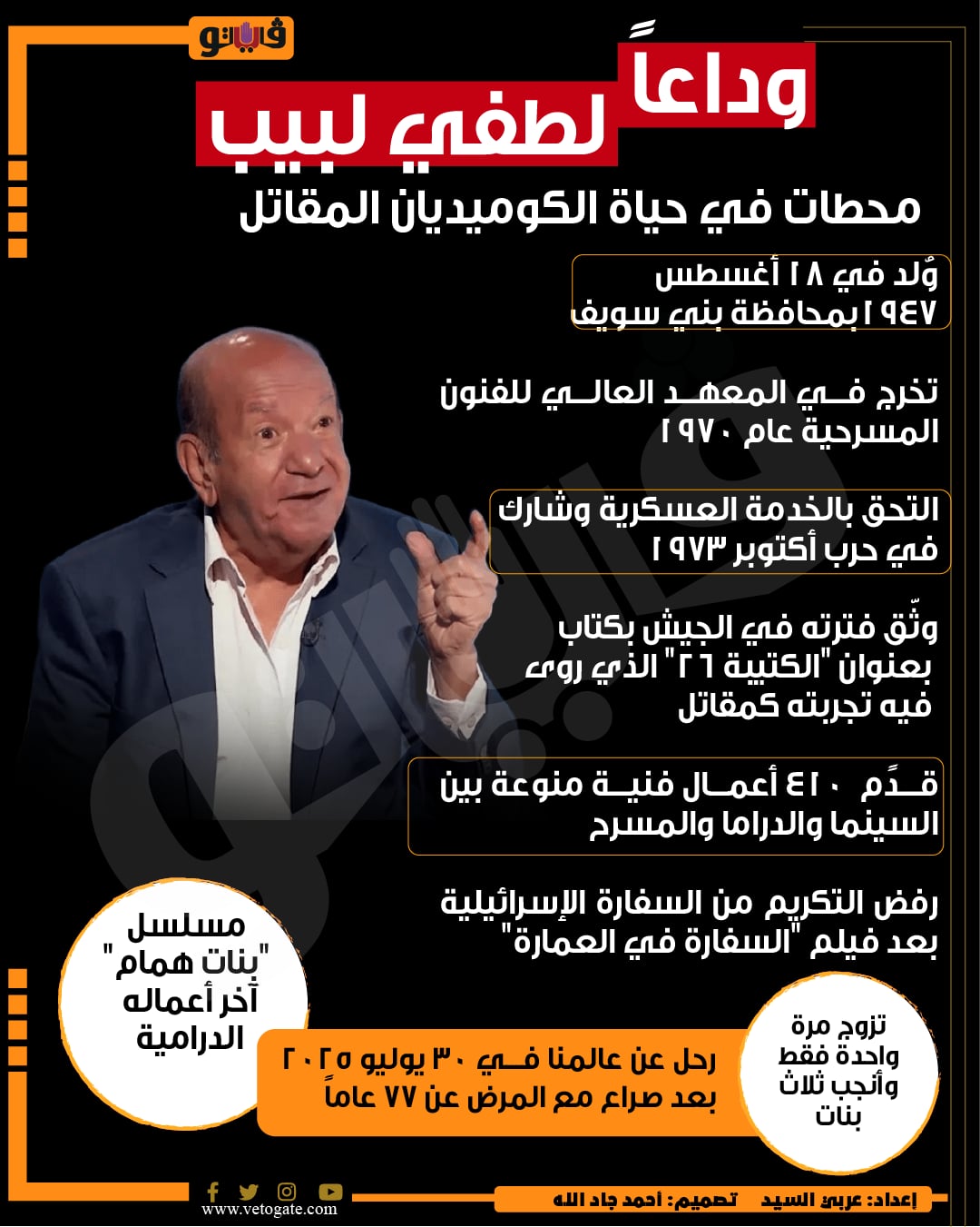 الفنان المقاتل.. محطات من حياة الراحل لطفي لبيب (انفوجراف)