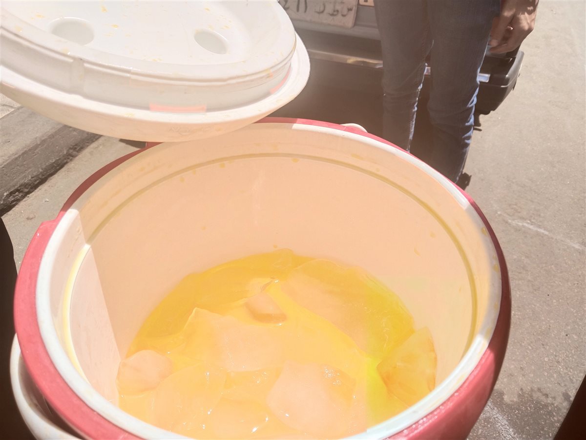 وبدأ هؤلاء الشباب النشطاء في حملة توزيع العصائر في الأماكن العامة بالمنطقة، كما قاموا بتجهيز خزان ثلج صغيرة مجهز بمشروبات العصير المثلجة والماء البارد، وذلك لتوزيعها بشكل مجاني على المارة في الشوارع والميادين الحيوية.