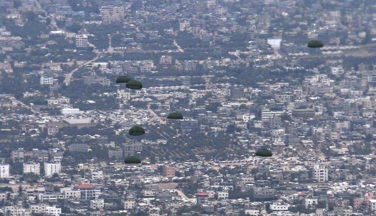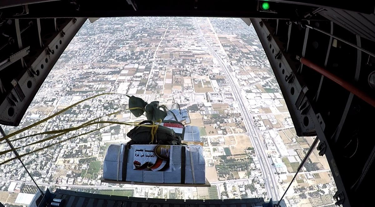 أقلعت 4 طائرات نقل عسكرية من جمهورية مصر العربية محملة بأطنان من المساعدات الغذائية لتنفيذ أعمال الإسقاط الجوى على المناطق التى يصعب الوصول إليها برًا بقطاع غزة، وذلك لتخفيف حدة الأوضاع المعيشية الصعبة ونقص الاحتياجات الإنسانية التى يعانى منها سكان القطاع، هذا بالتزامن مع ستمرار تقديم المساعدات برًا.
