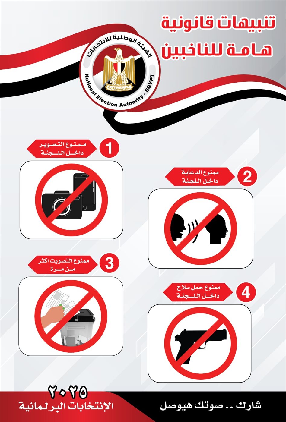 وأعلنت الهيئة الوطنية للانتخابات عبر موقعها الإلكتروني تنبيهات هامة للناخبين قبل انطلاق الانتخابات، وهي: