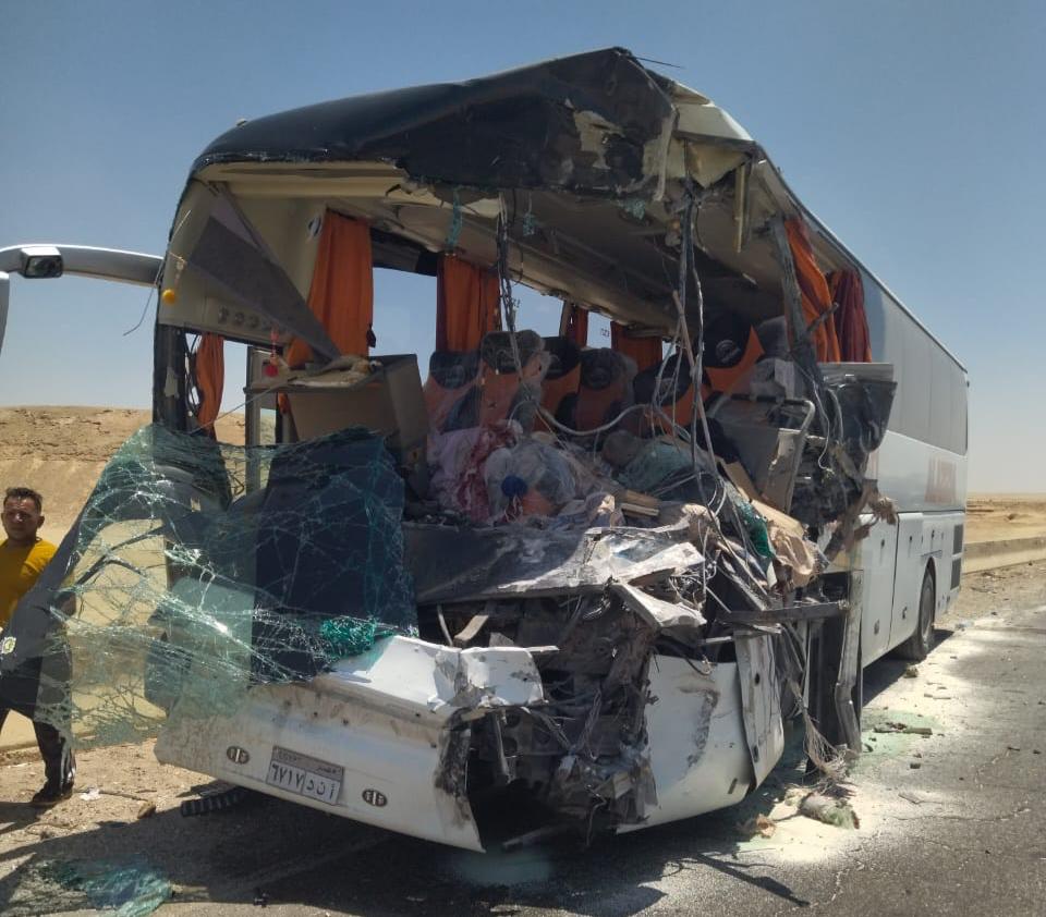 لقى شخص مصرعه وأصيب خمسة آخرون في حادث تصادم مروع بين أتوبيس وسيارة نقل على الطريق الصحراوي الشرقي بـ محافظة المنيا.