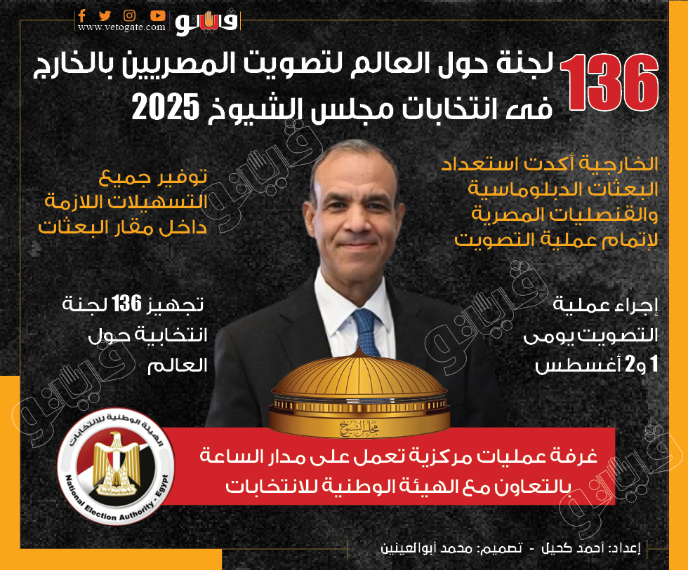 136 لجنة حول العالم لتصويت المصريين بالخارج فى انتخابات مجلس الشيوخ 2025 (إنفوجراف)