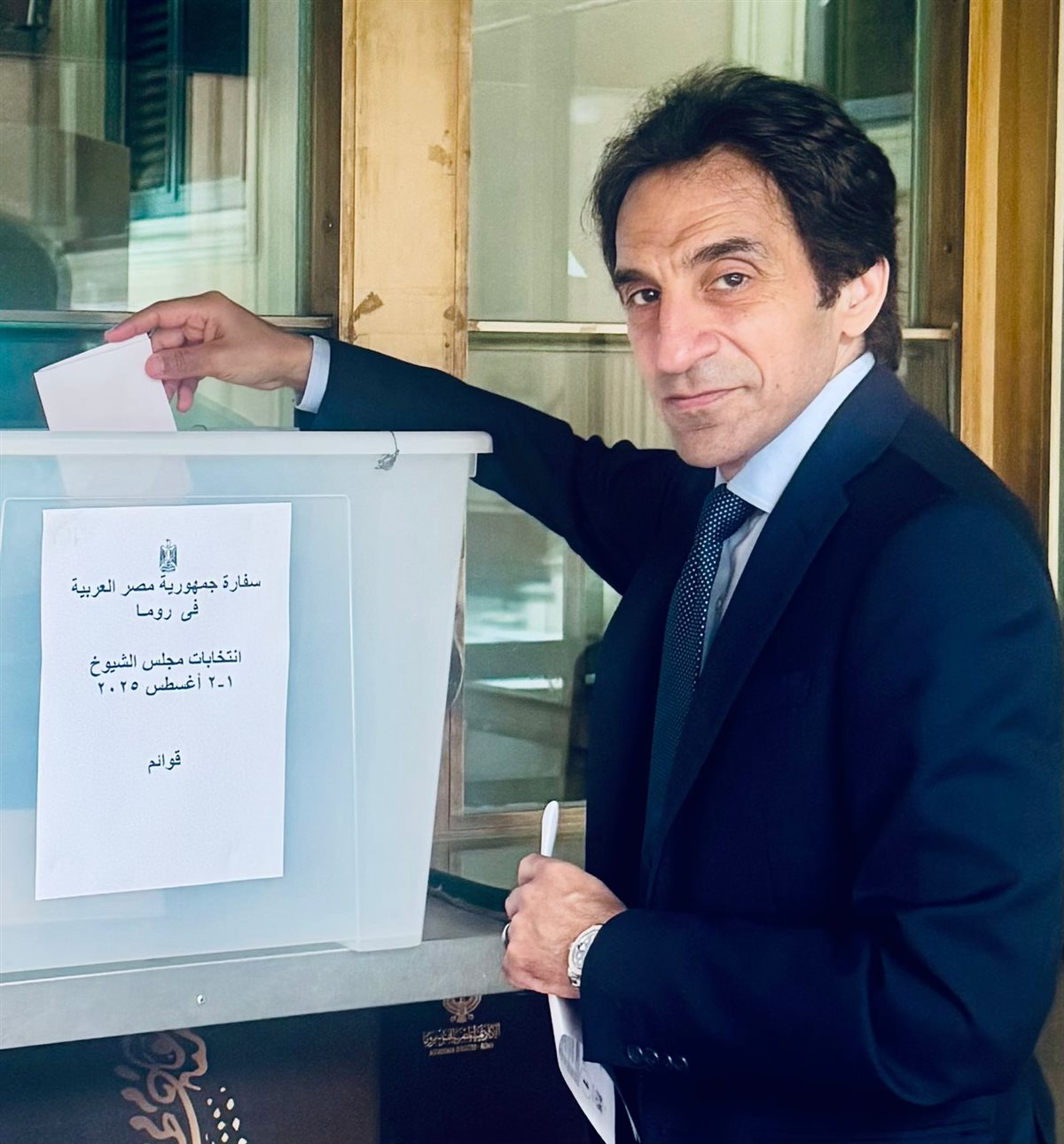 بسام راضي يفتتح عمل لجنة انتخابات مجلس الشيوخ بالسفارة المصرية في روما ويدلي بصوته (صور)