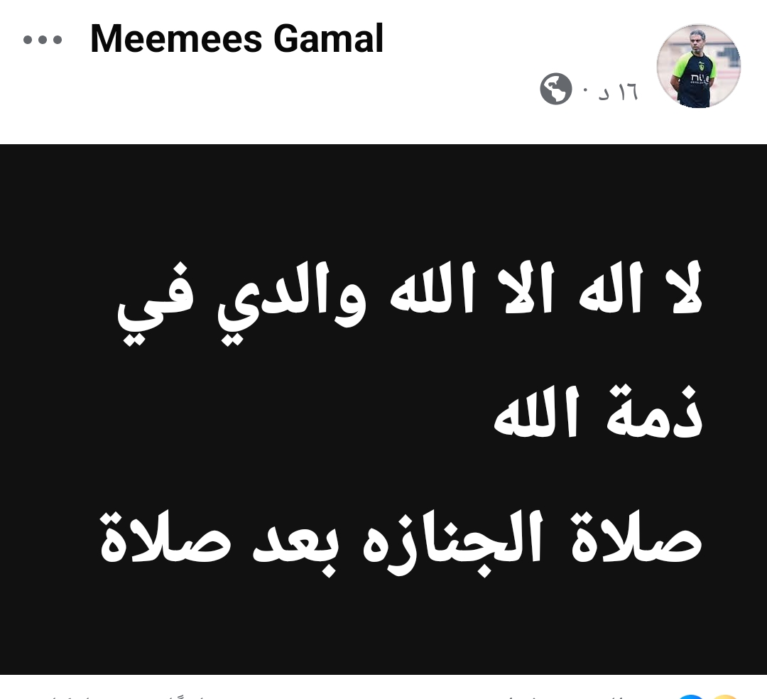 وكتب معتمد جمال عبر صفحته علي فيس بوك: "لا إله إلا الله والدي في ذمة الله.. صلاة الجنازة بعد صلاة الظهر بمسجد أحمد عرابي بجوار شركة الكهرباء".