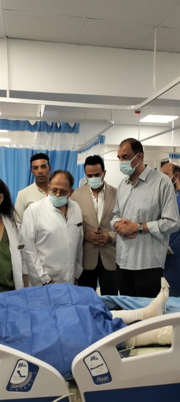 ورافق المحافظ خلال الجولة التفقدية الدكتور عمرو دويدار، وكيل وزارة الصحة بسوهاج، حيث حرص على متابعة جميع الحالات المصابة داخل غرف الرعاية والطوارئ، واستمع لشرح مفصل عن مستوى الخدمات الطبية المقدمة.