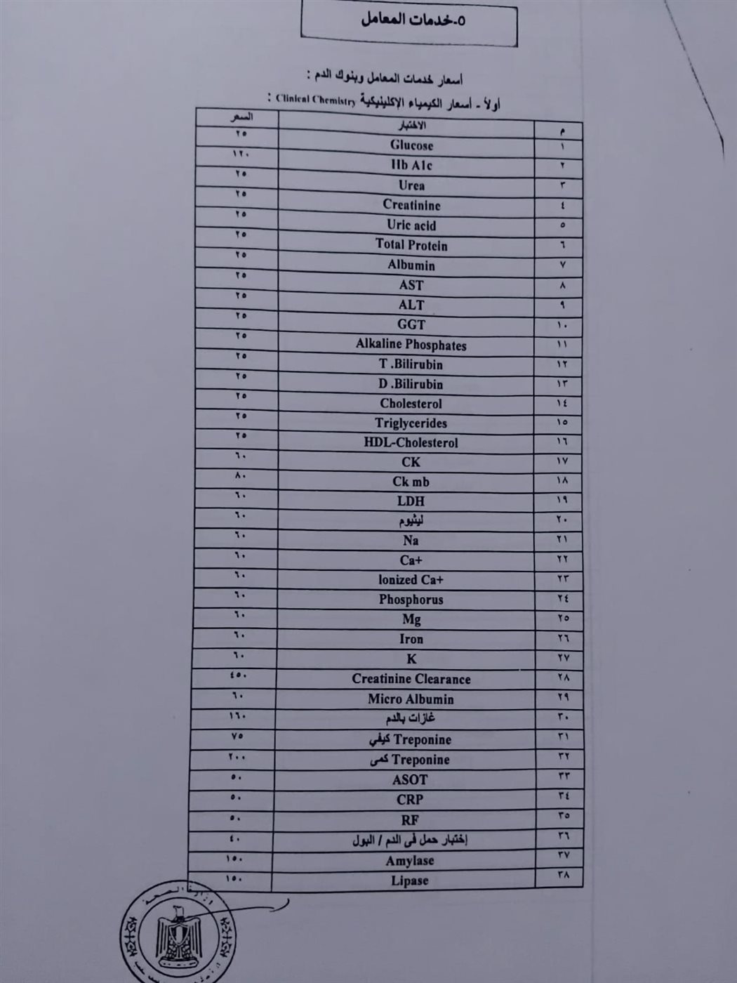 قوائم أسعار للخدمات العلاجية التي تقدمها مستشفيات الصحة النفسية