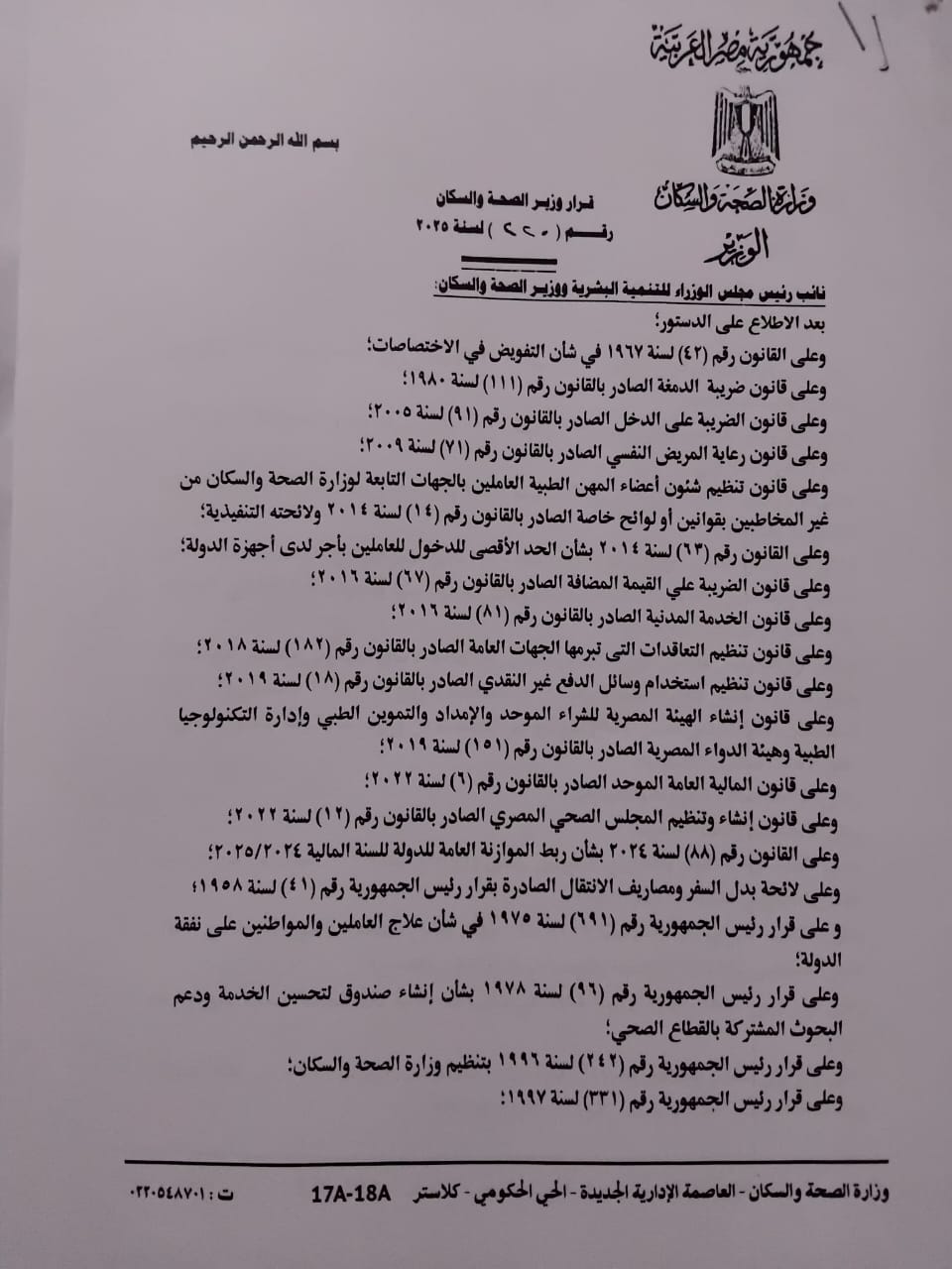 أصدر الدكتور خالد عبدالغفار، نائب رئيس الوزراء، ووزير الصحة والسكان قرار رقم ٢٢٠ لسنة ٢٠٢٥، بشأن إصدار لائحة مالية وإدارية لصندوق تحسين الخدمة بمستشفيات الصحة النفسية ومراكز علاج الإدمان التابعة للأمانة العامة للصحة النفسية.