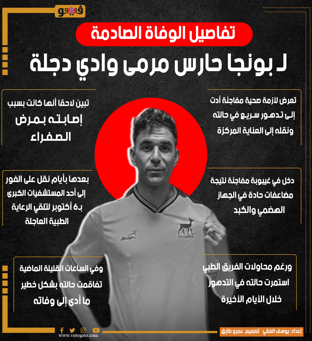 تفاصيل الوفاة الصادمة لـ بونجا حارس مرمى وادي دجلة (إنفوجراف)