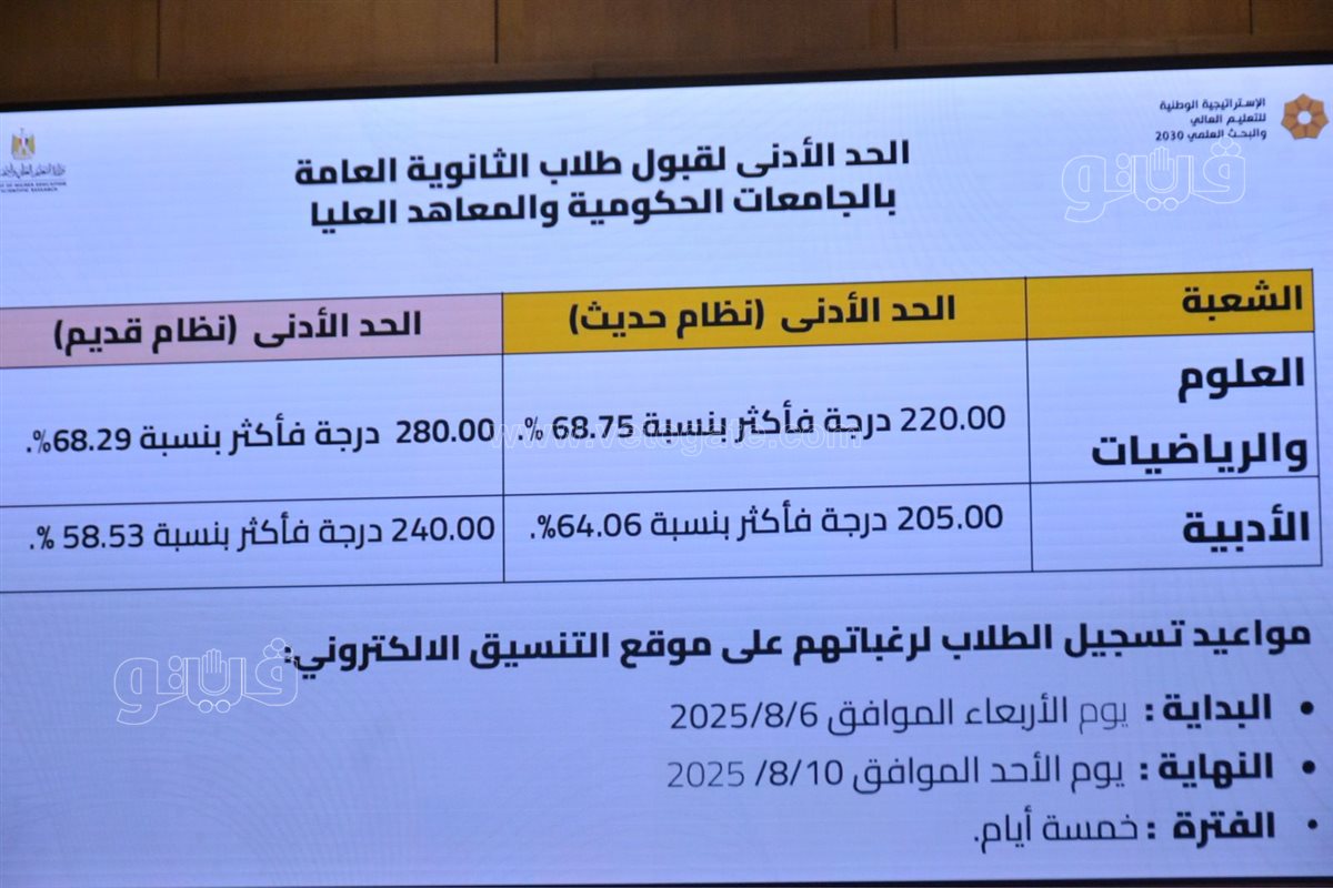الحد الأدنى للمرحلة الأولى من تنسيق الثانوية العامة 2025