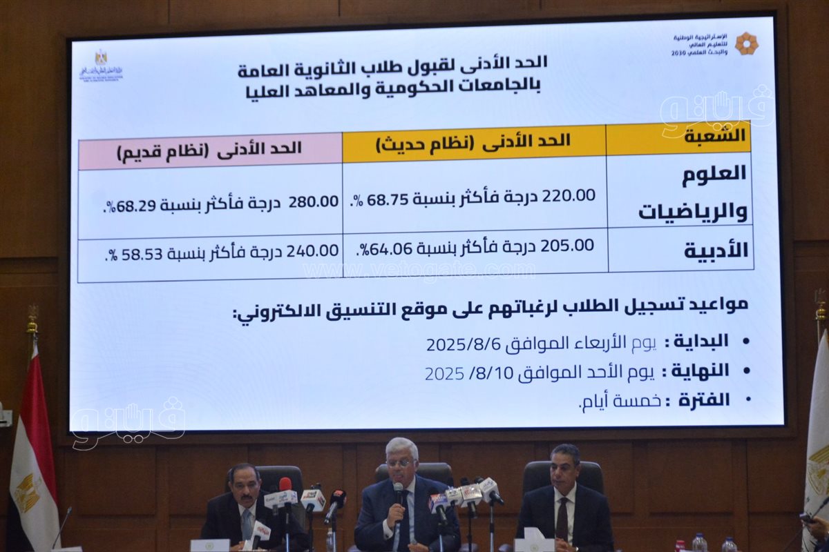 الحد الأدنى للمرحلة الأولى من تنسيق الثانوية العامة 2025