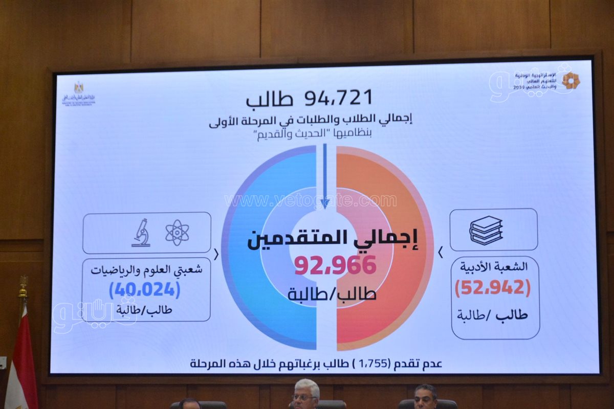ويكون بذلك إجمالى عدد طلاب المرحلة الأولى من النظامين الحديث والقديم لهذه المرحلة 94721 طالبا.